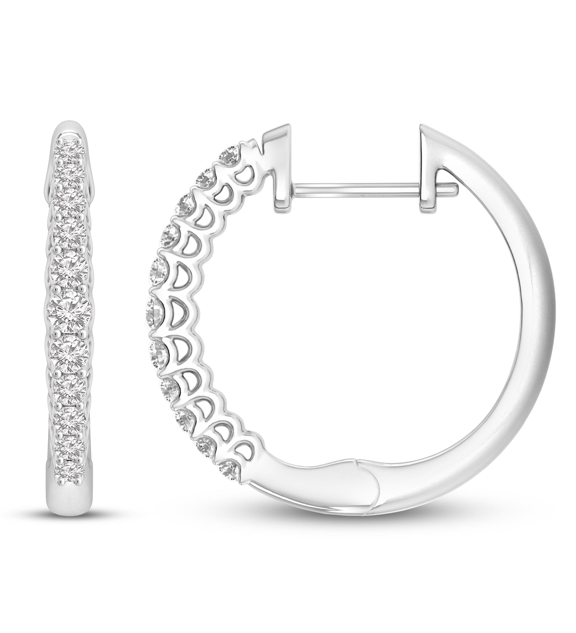 Pre-Owned Zales 10k White Gold 1/2ct Round Diamond Front & Back Pave Hoops