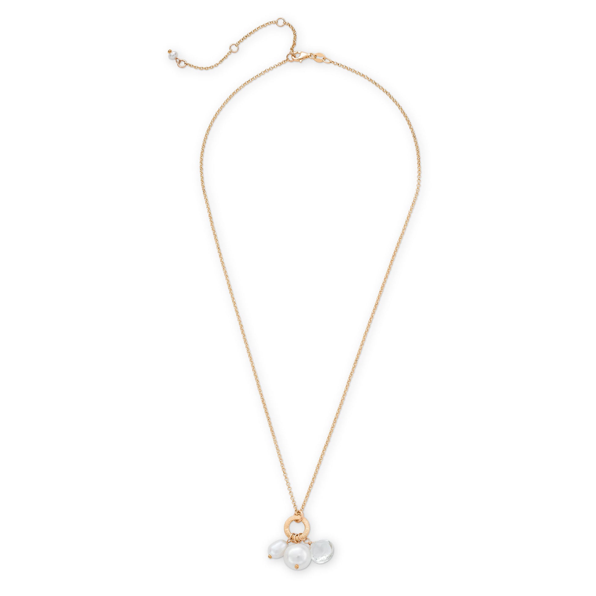 Proof that pearls don’t have to be precious. A cluster of genuine cultured pearls & green amethyst adds shape, texture, and movement to this charm-forward design. Finished in 14k gold-plated sterling silver, it’s a modern update to a classic—one that doesn’t try too hard.