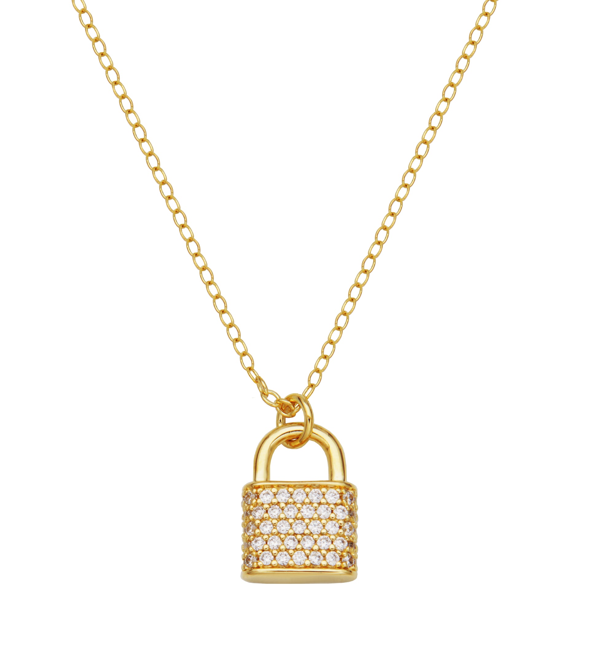 18k Gold Plated Pave CZ Lock Pendant Necklace