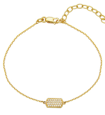 18k Gold Plated Pave CZ Dog Tag Bracelet
