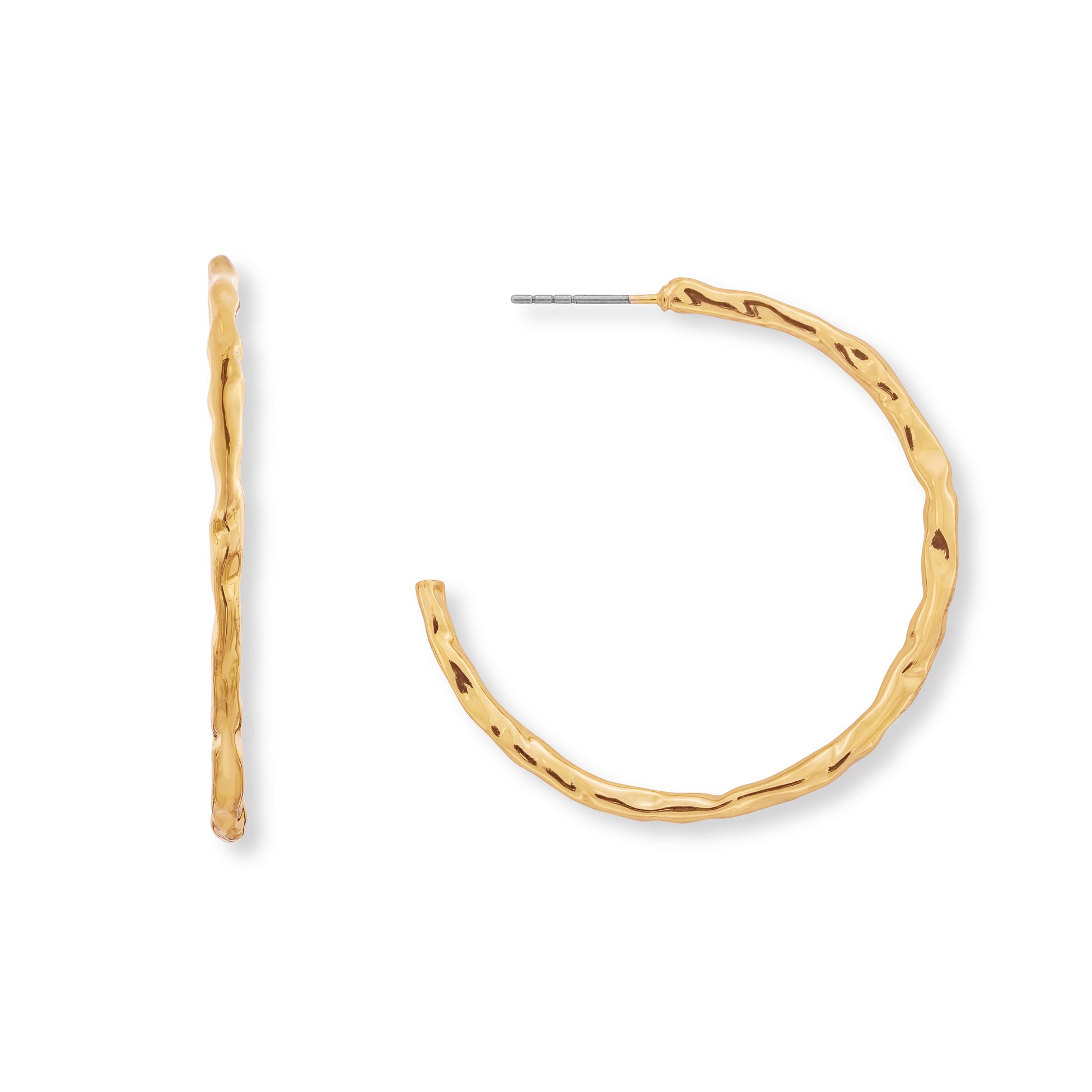 Textured for impact, these gold hoops combine size and subtlety with a hammered finish that stands out. Made with recycled materials, they’re as mindful as they are stylish.