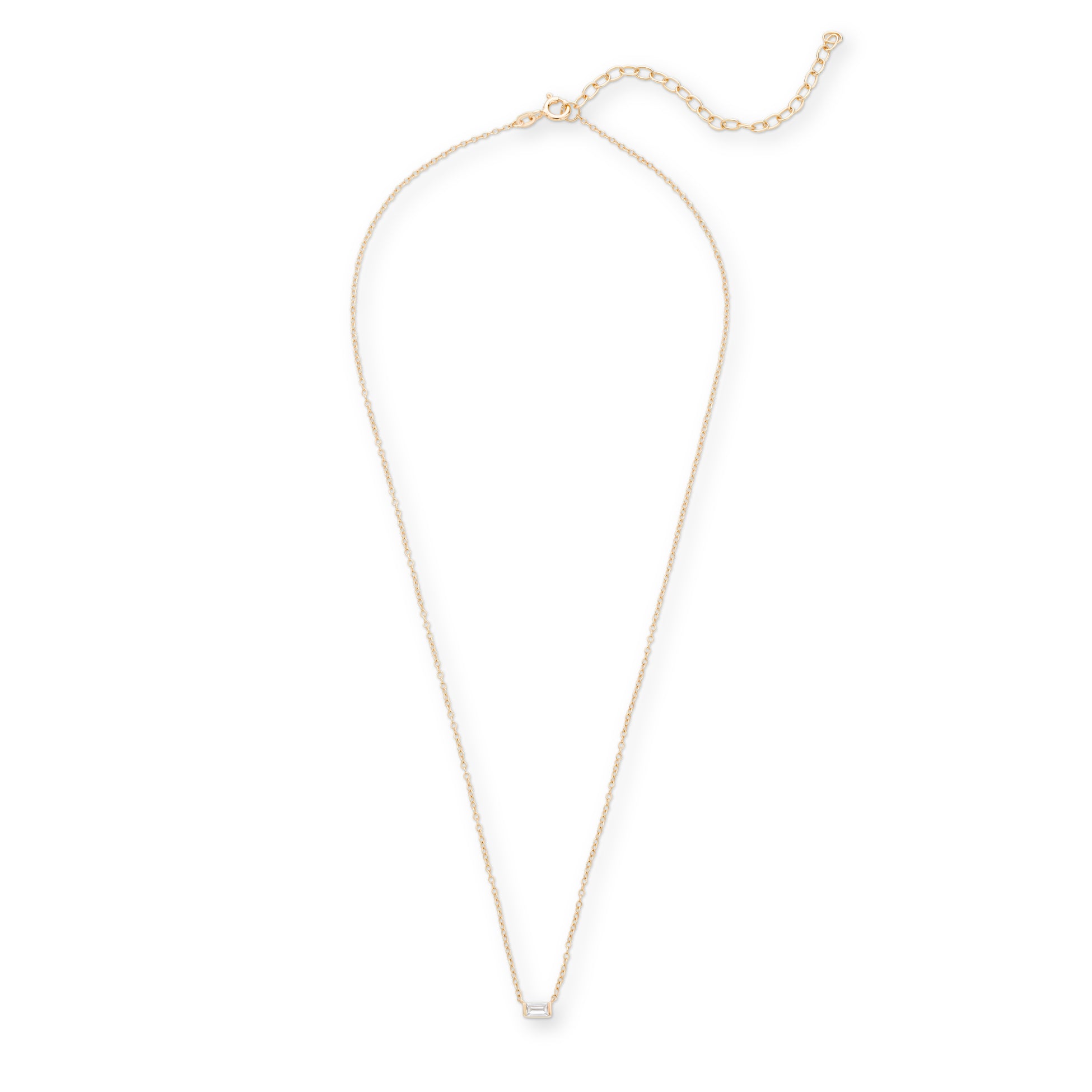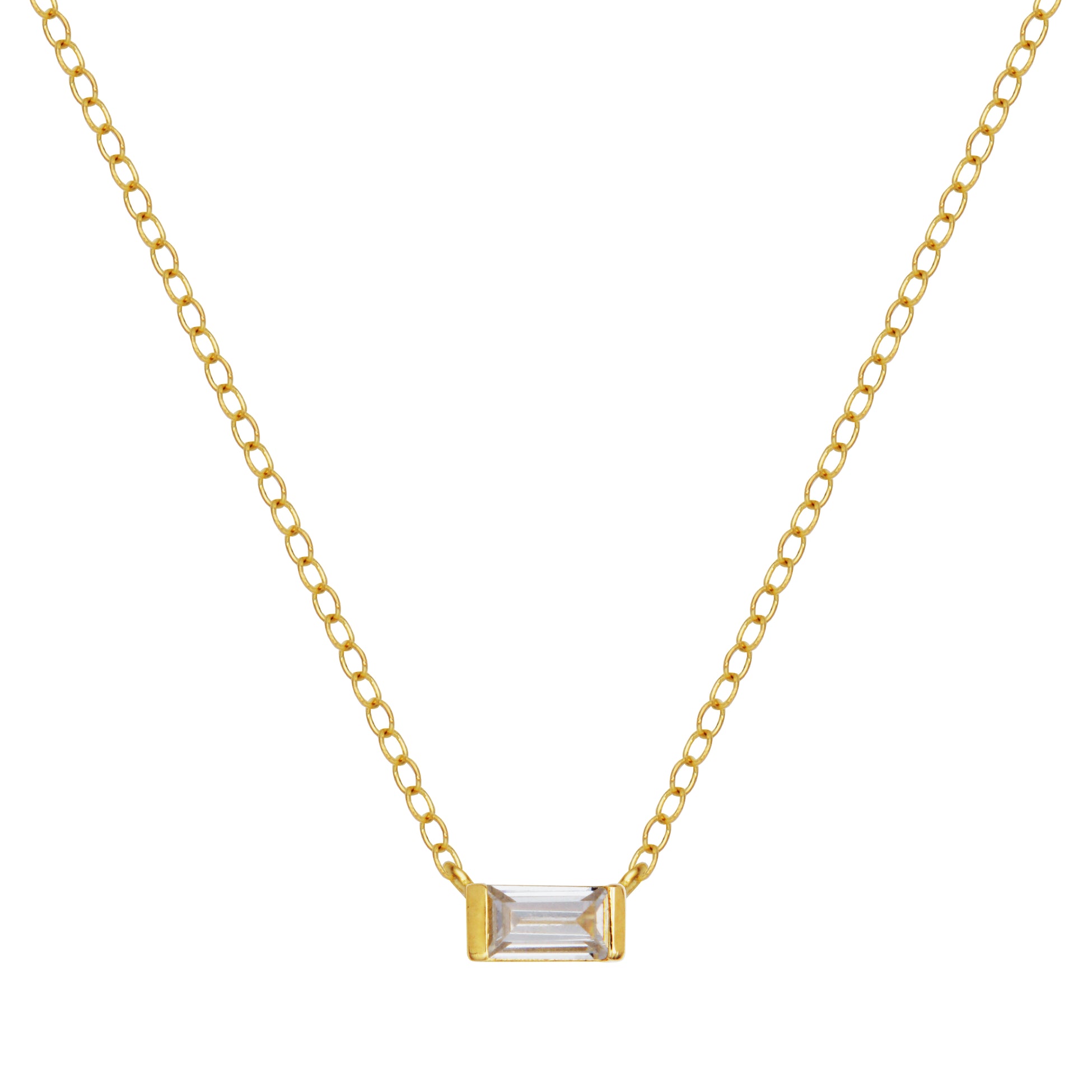 Boasting a cubic zirconia baguette pendant front and center, this 18k gold-plated necklace is the ultimate showstopper.