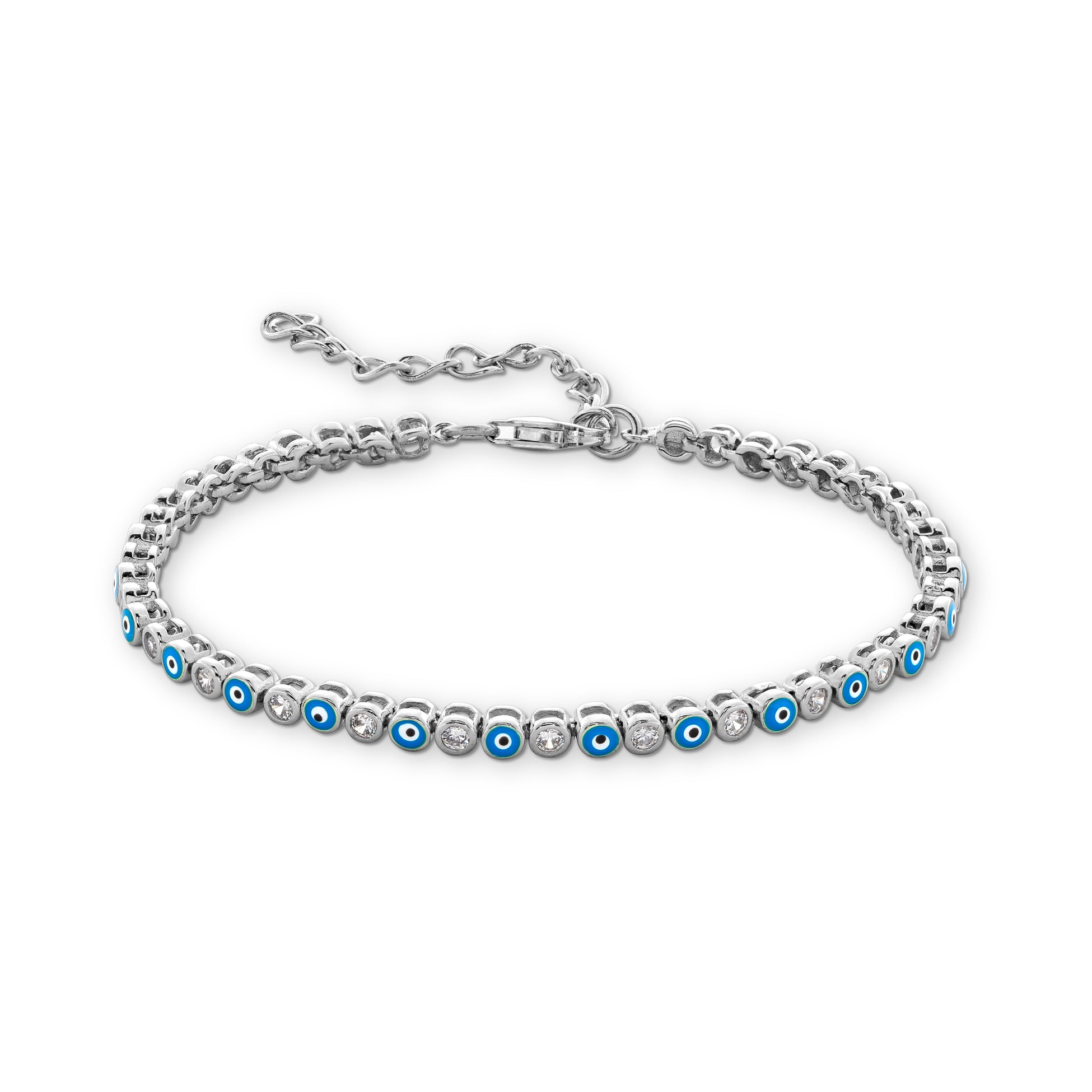 Embarcadero Evil Eye CZ Tennis Bracelet in Blue & Rhodium over Sterling Silver