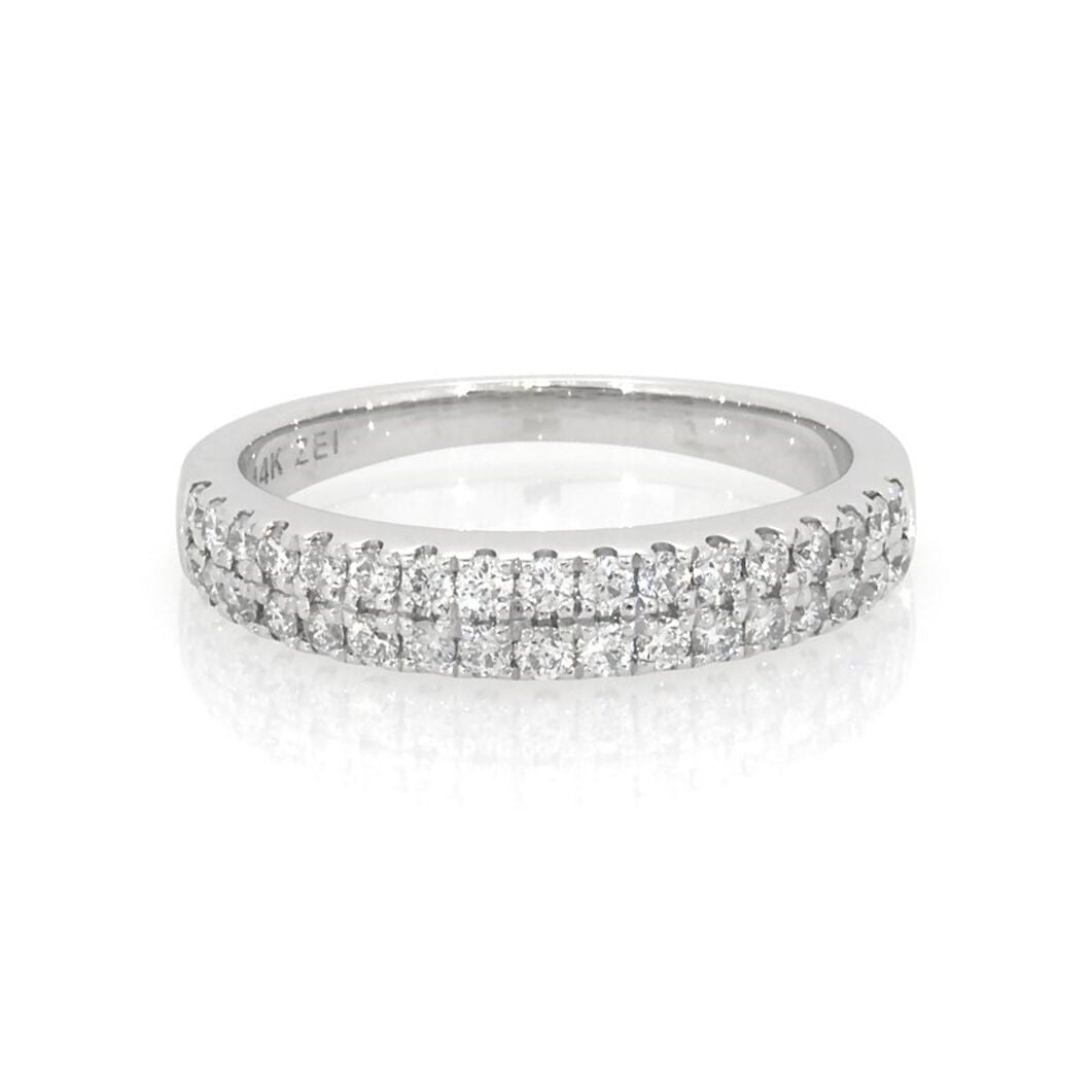 Get double the dazzle when you stack the Pre-Owned Jared 1/2ct Diamond Band Ring in 14k White Gold for your celebrations or let it stand alone. Featuring real diamonds set in 14k white gold, this elegant ring is part of the Pre-Owned Luxury by Rocksbox fine jewelry collection.