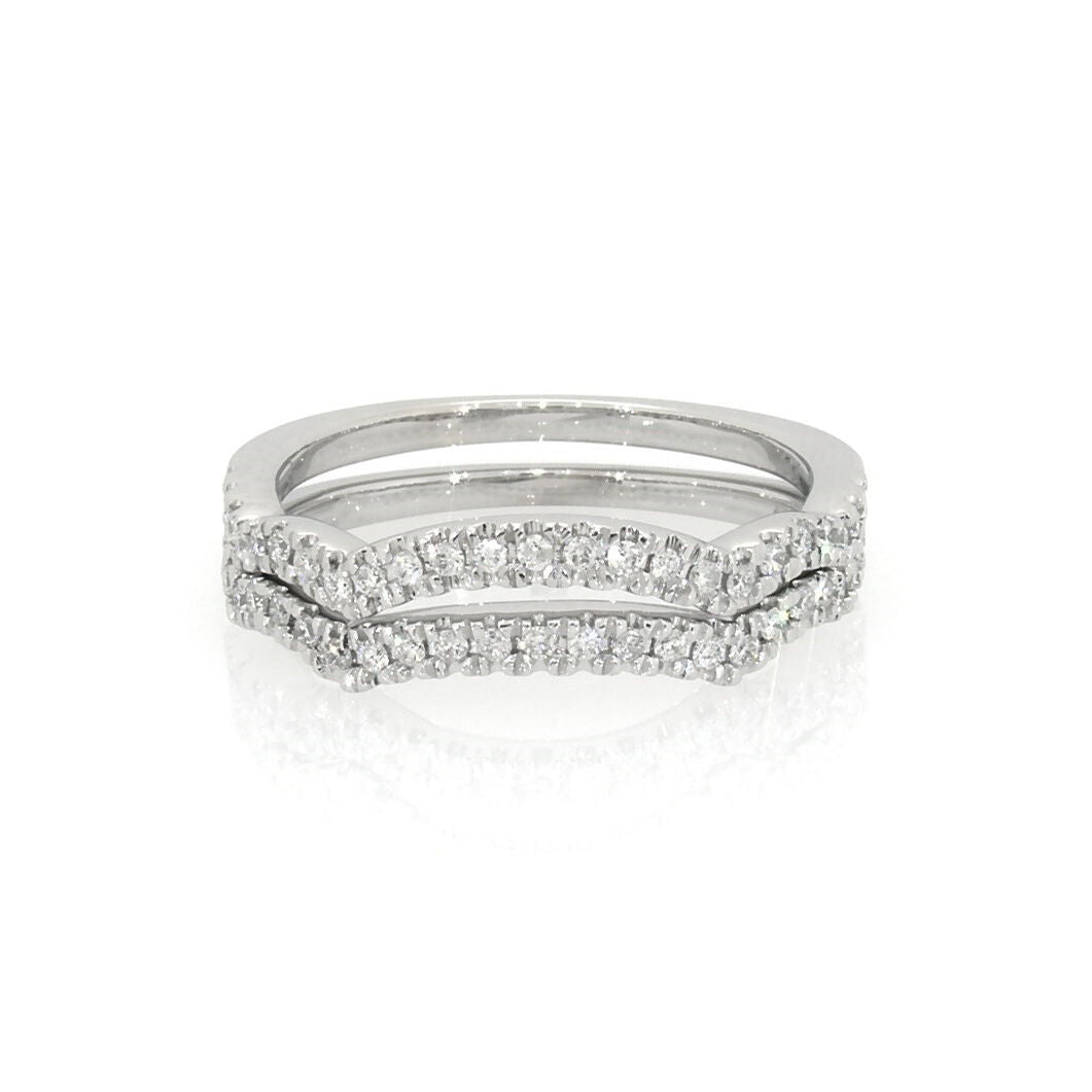 The Pre-Owned Kay 14k White Gold 1/4ct Round Diamond Pave Curved Ring Set is a set of two pre-owned, luxury rings that slightly curve in the front. Size 5.