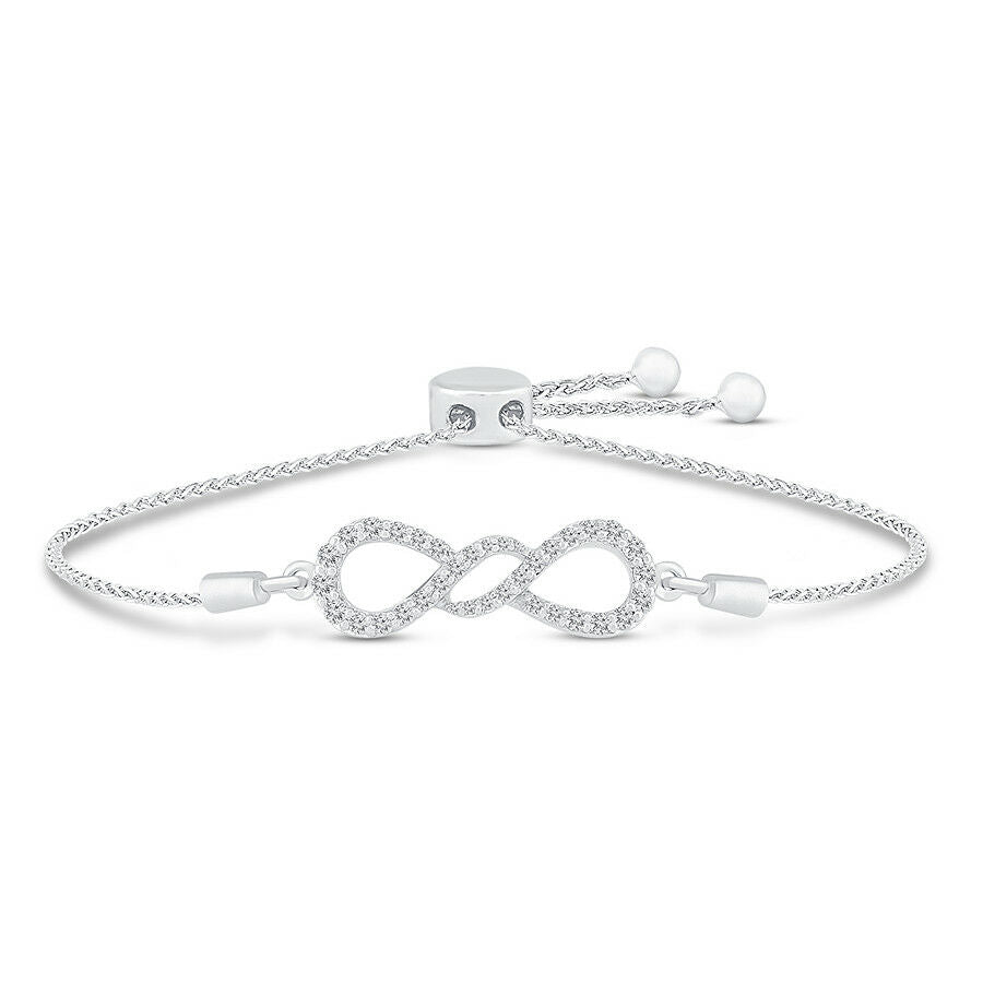 Diamonds are forever...and ever and ever in the Pre-Owned Jared 3/8ct Diamond Infinity Pendant Bracelet in 10k White Gold. Featuring real diamonds in interlocked, infinity-shaped settings of 10k white gold, this adjustable bracelet is part of the Pre-Owned Luxury by Rocksbox fine jewelry collection.