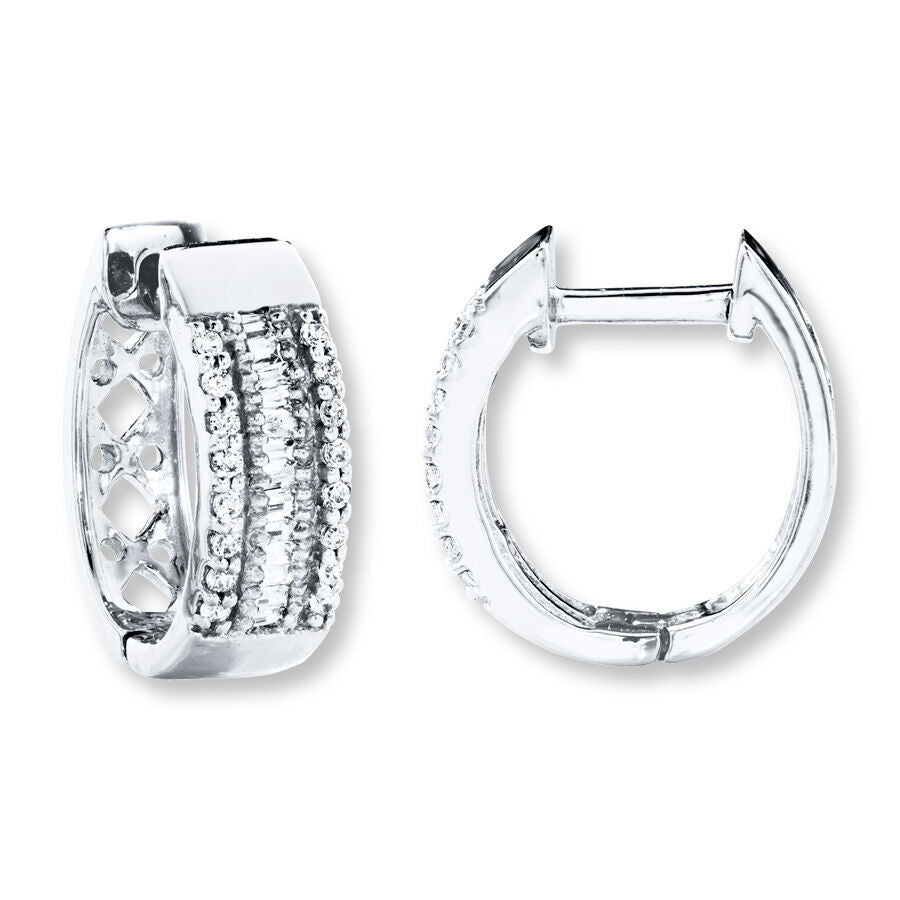 Pre-Owned Kay 1/4ct tw Diamond Huggie Earrings in 10k White Gold