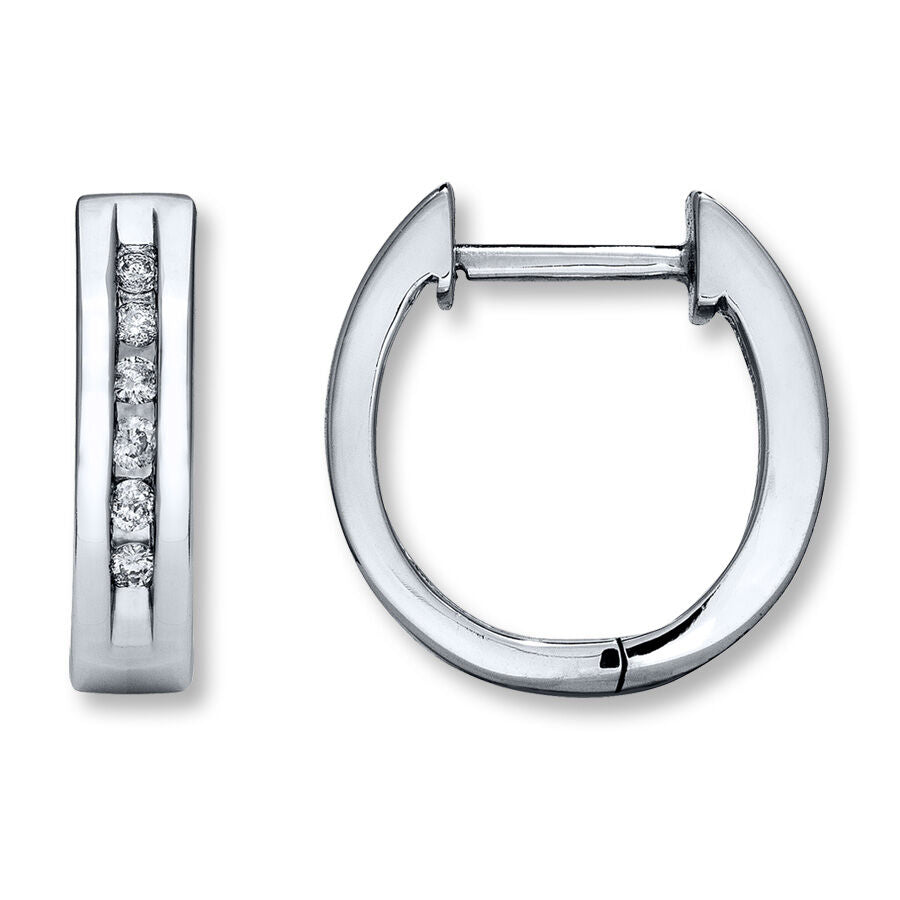 Pre-Owned Kay 1/8ct tw Round-cut Diamond Hoop Earrings in 10k White Gold