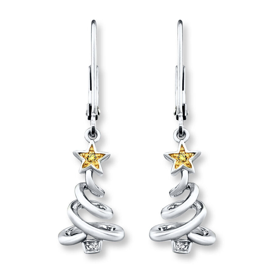 Pre-Owned Kay Yellow & White Diamond Accent Christmas Tree Earrings in Sterling Silver