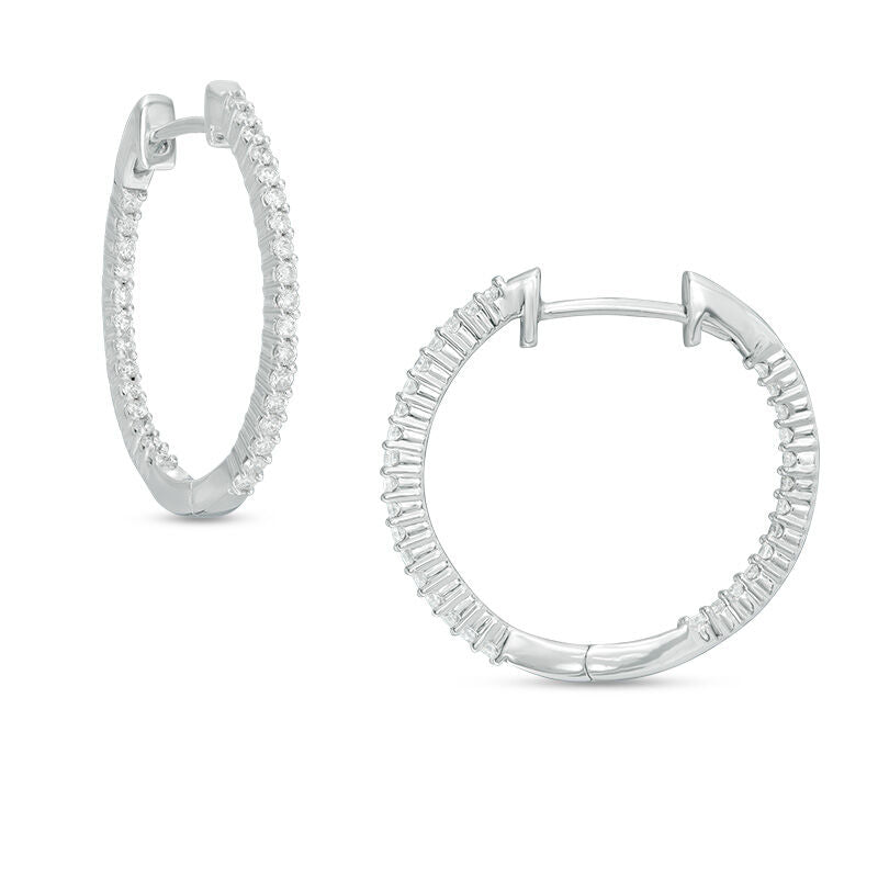 Pre-Owned Zales 10k White Gold 1/2ct Round Diamond Front & Back Pave Hoops