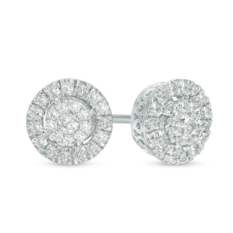 Pre-Owned Zales 10k White Gold 1/4ct tw Round Diamond Halo Studs
