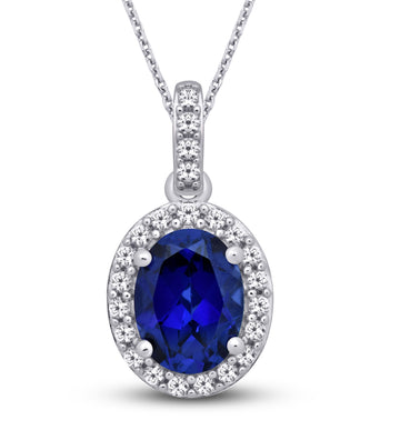 Kay Oval Lab Grown Blue Sapphire Solitaire Pendant Necklace