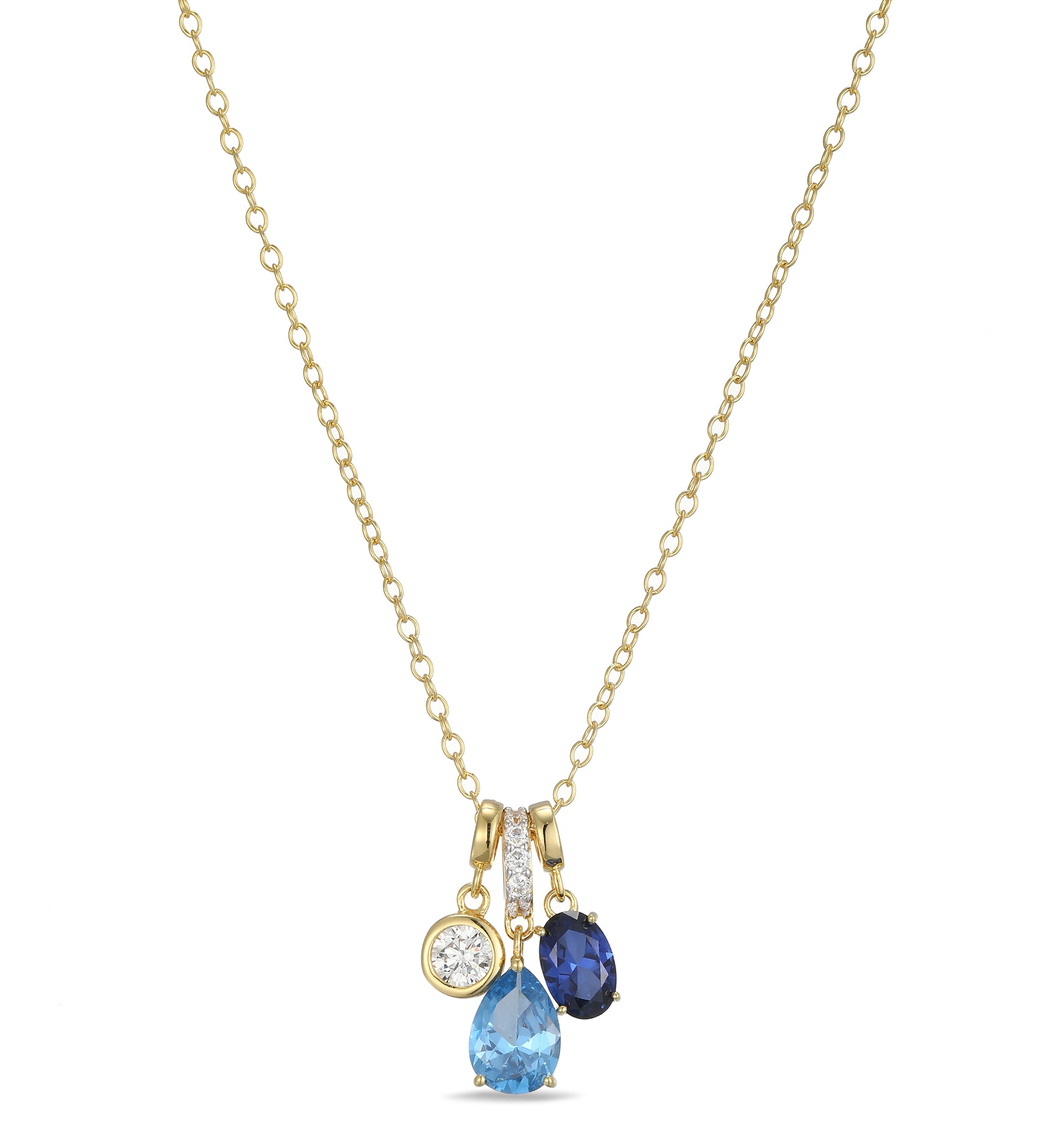 Blue Lab Grown Sapphire, Blue Topaz & Lab-Grown Diamond Pendant Necklace 1/5 ct tw 24K Yellow Gold Vermeil Sterling Silver 19"