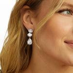 Designed by Melinda Maria, the Hello Gorgeous Drop Earrings live up to their name—featuring dazzling pear-shaped CZs suspended beneath two oval-cut accents. They’re your go-to for a little extra glam on date night or any night.
