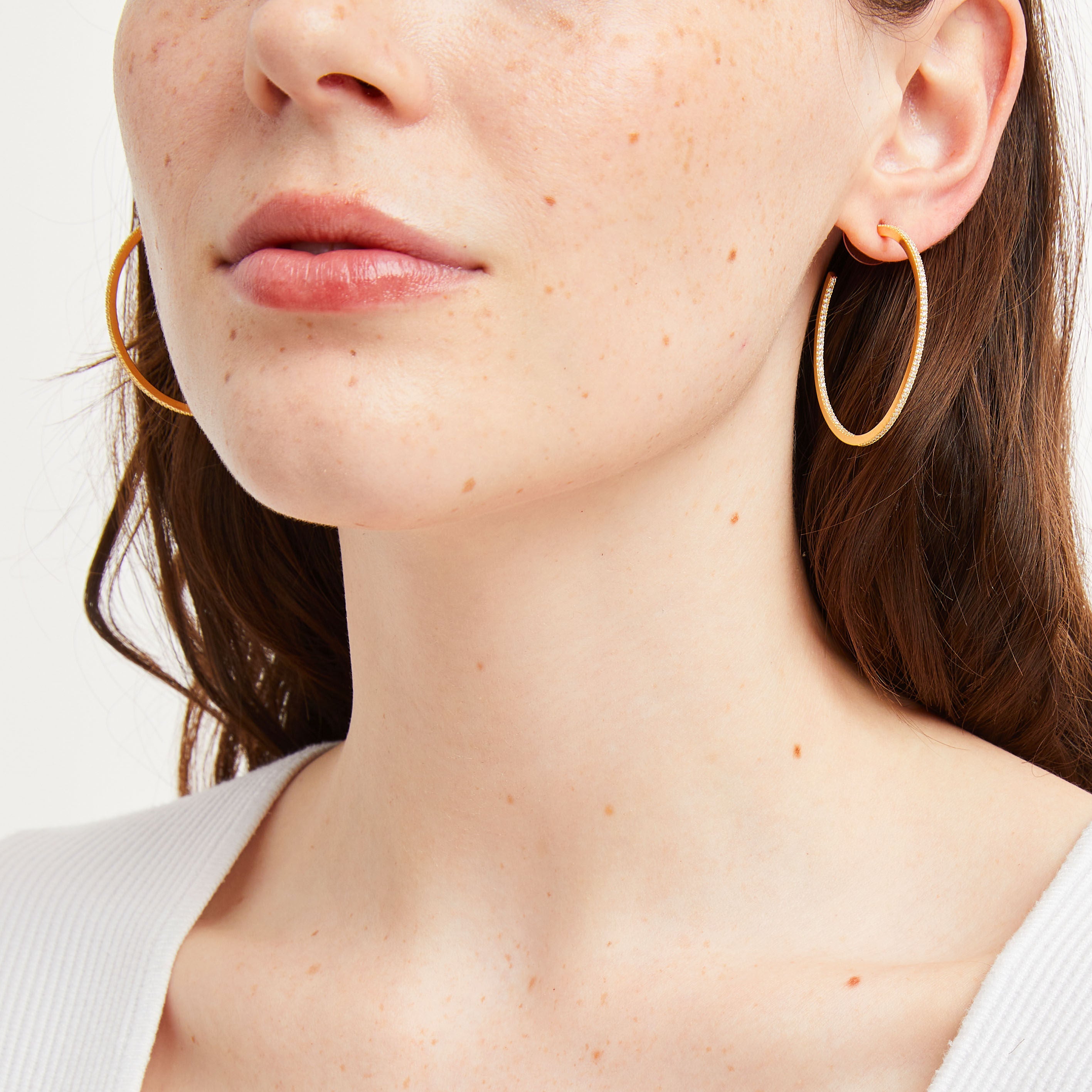 18k Gold Plated Large Pave Hoops