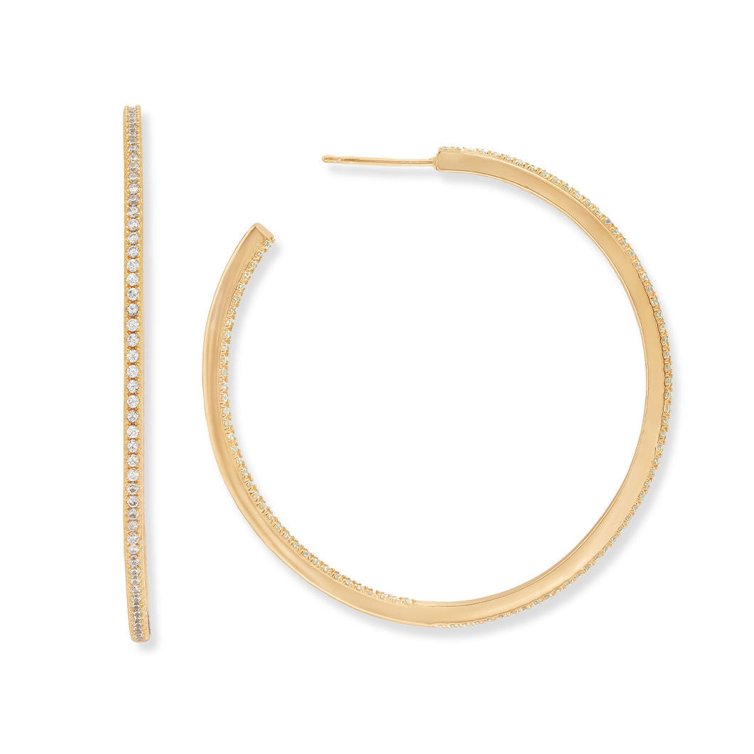 Classic hoops shine brighter than ever with the 18k Gold Plated Large Pave Hoops by Rocksbox. These earrings feature high polish, 18k gold-plating with pave.