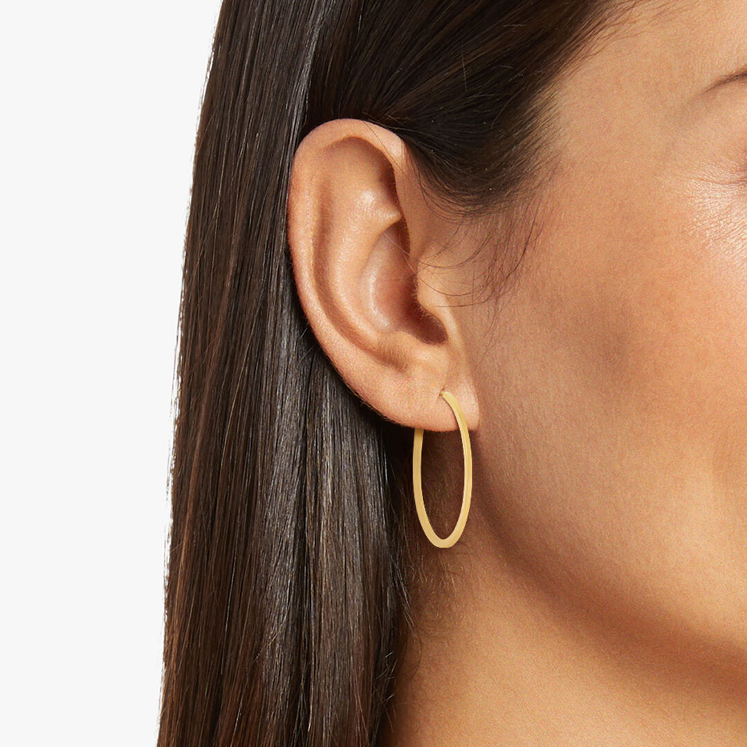 The Rocksbox Demi Fine Solid Gold Hoops are high polish 18k real gold plated over sterling silver. These pieces display slim and flawless designed hoops.