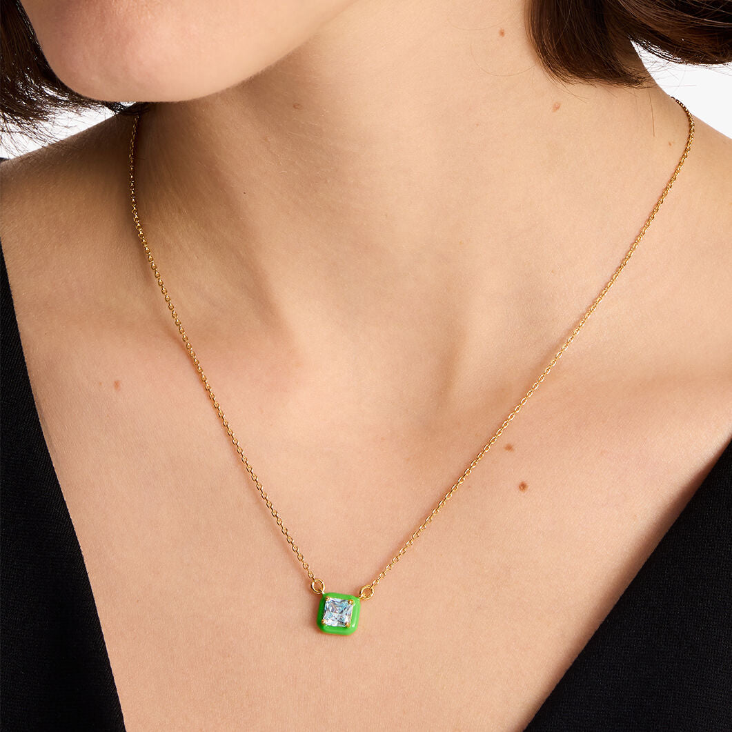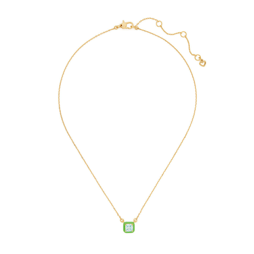 The Brighten Up Pendant in Green & Light Blue by kate spade new york is an elevated everyday essential that adds a beautiful pop of color. This necklace is made of high polish, 18k gold plating with a bold enamel pendant and measures 16 inches with up to 3 additional inches.