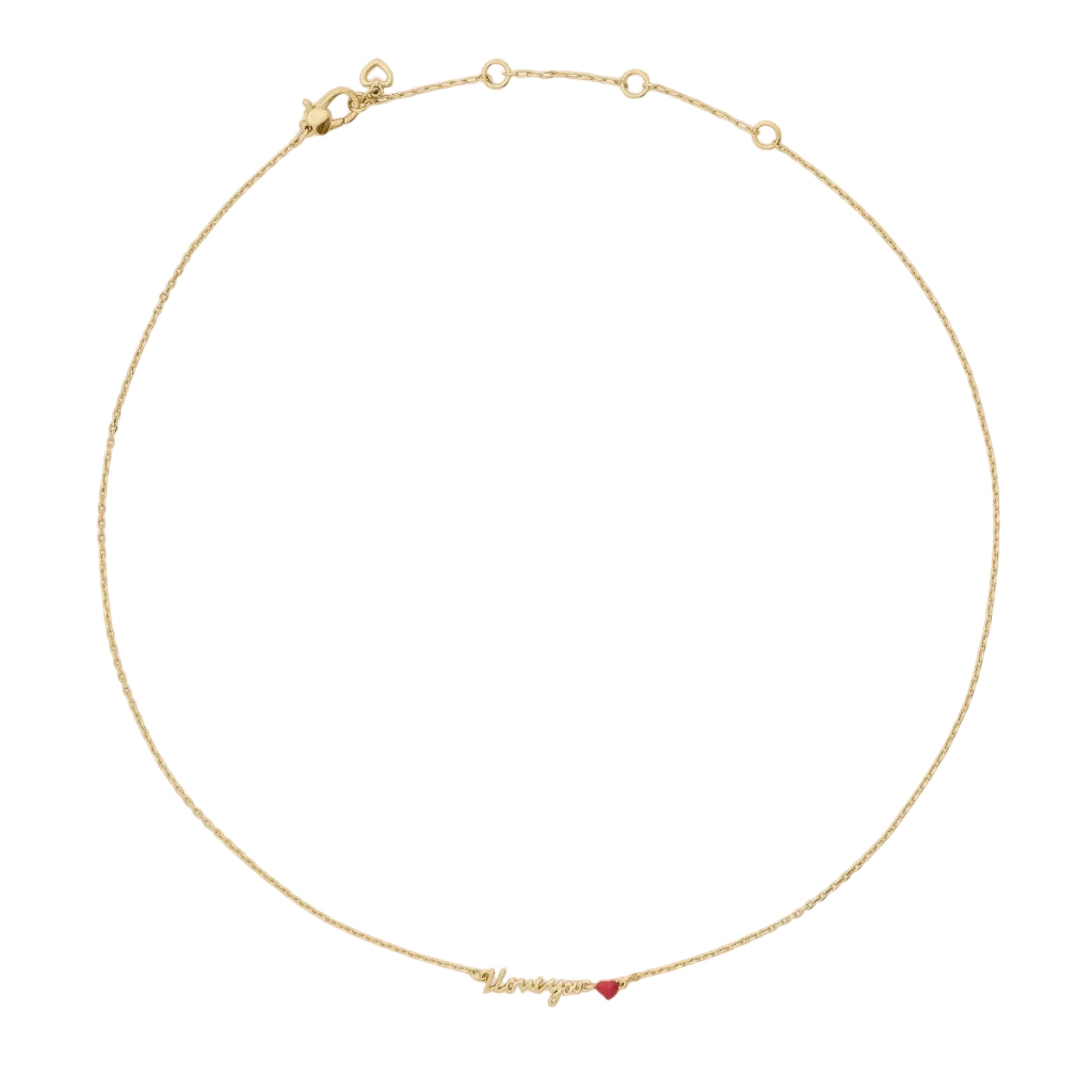 A charm-style necklace with a romantic twist. With "I love you" script and an enamel heart accent for a sweet touch.