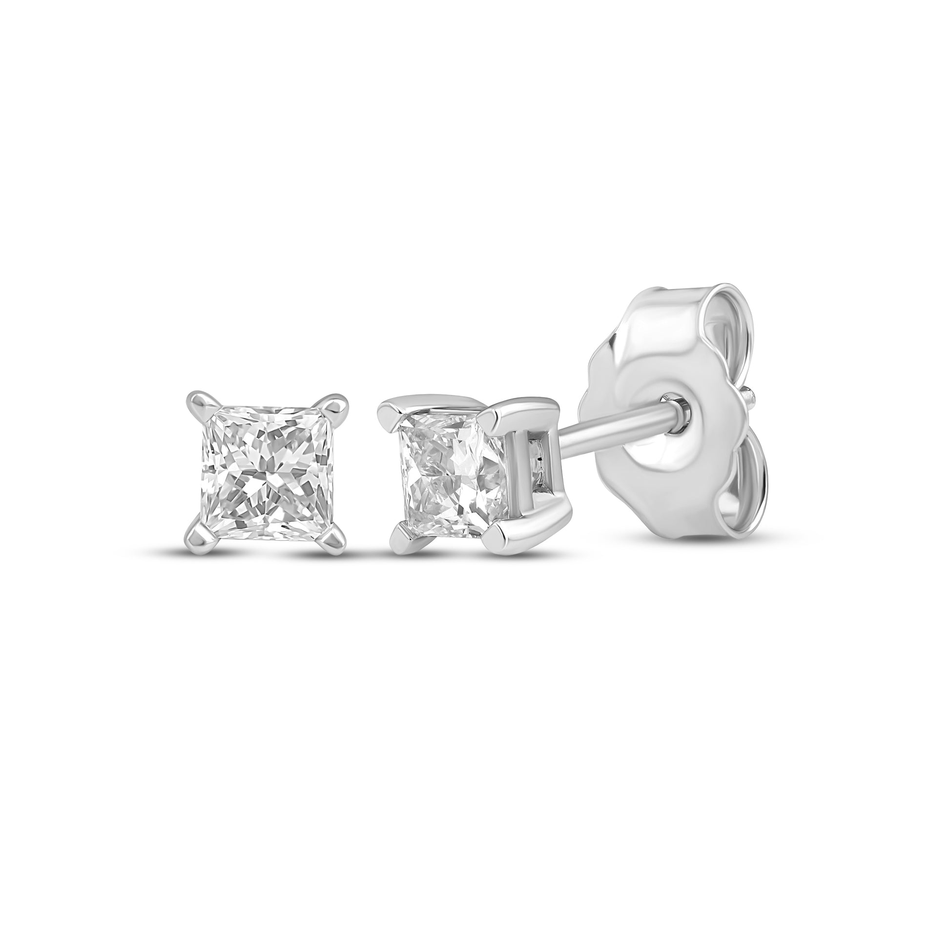 Pre-Owned Kay 1/3ct tw Princess-Cut Lab-Grown Diamond Solitaire Stud Earrings in 10K White Gold