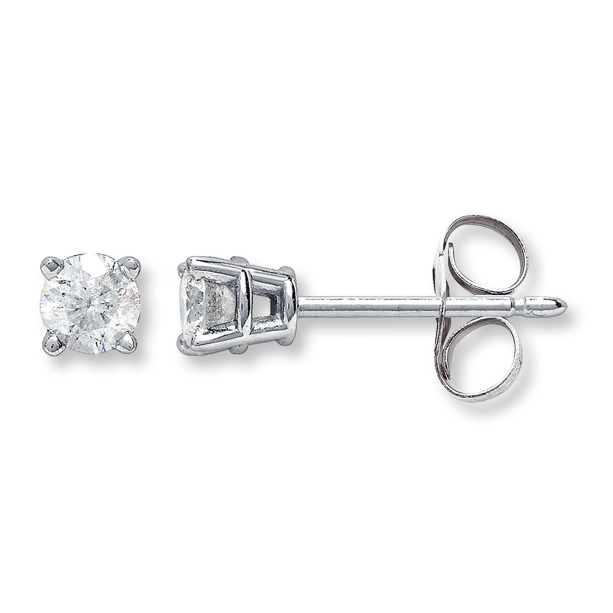 Pre-Owned Kay 3/4ct tw Round-cut Diamond Solitaire Earrings in 14K White Gold