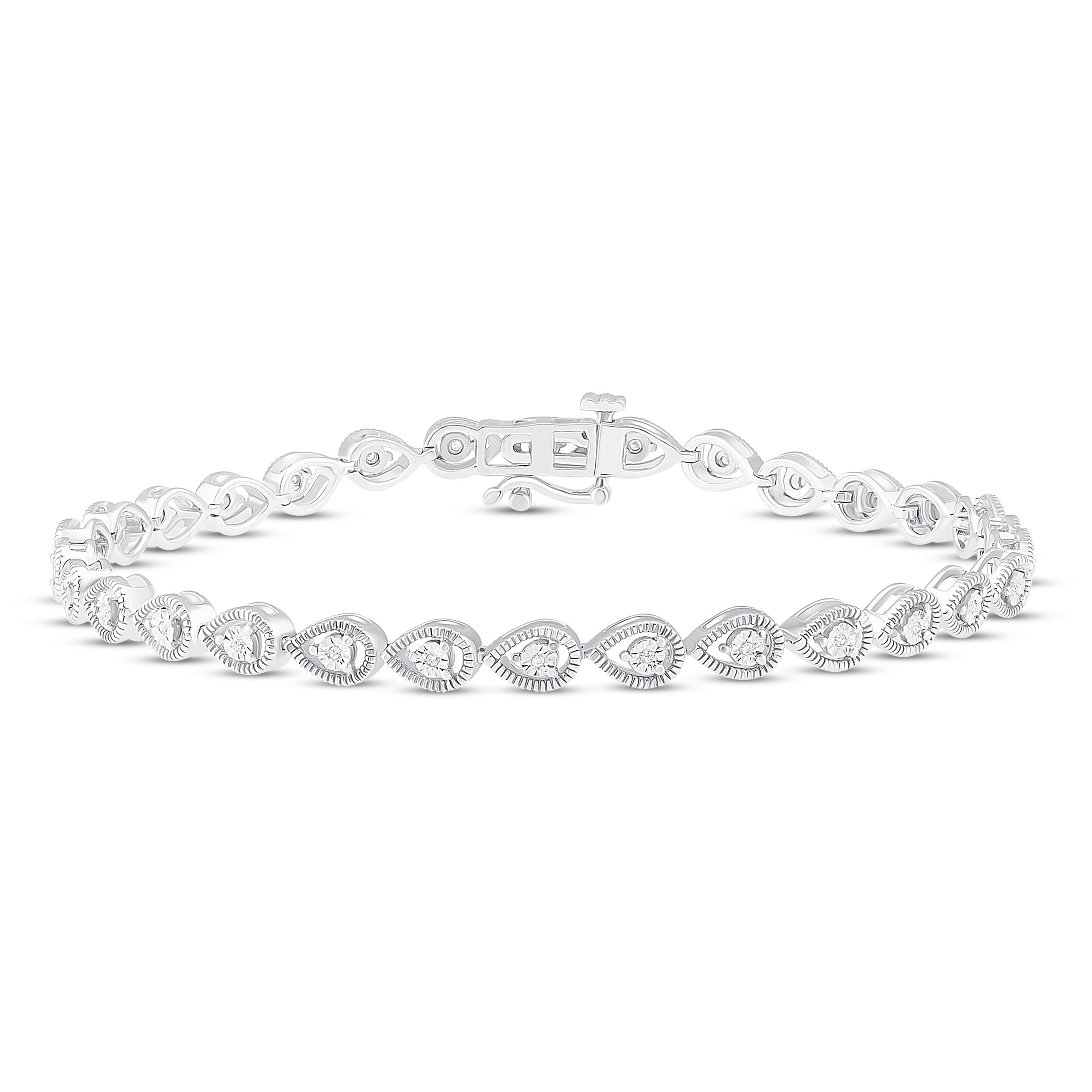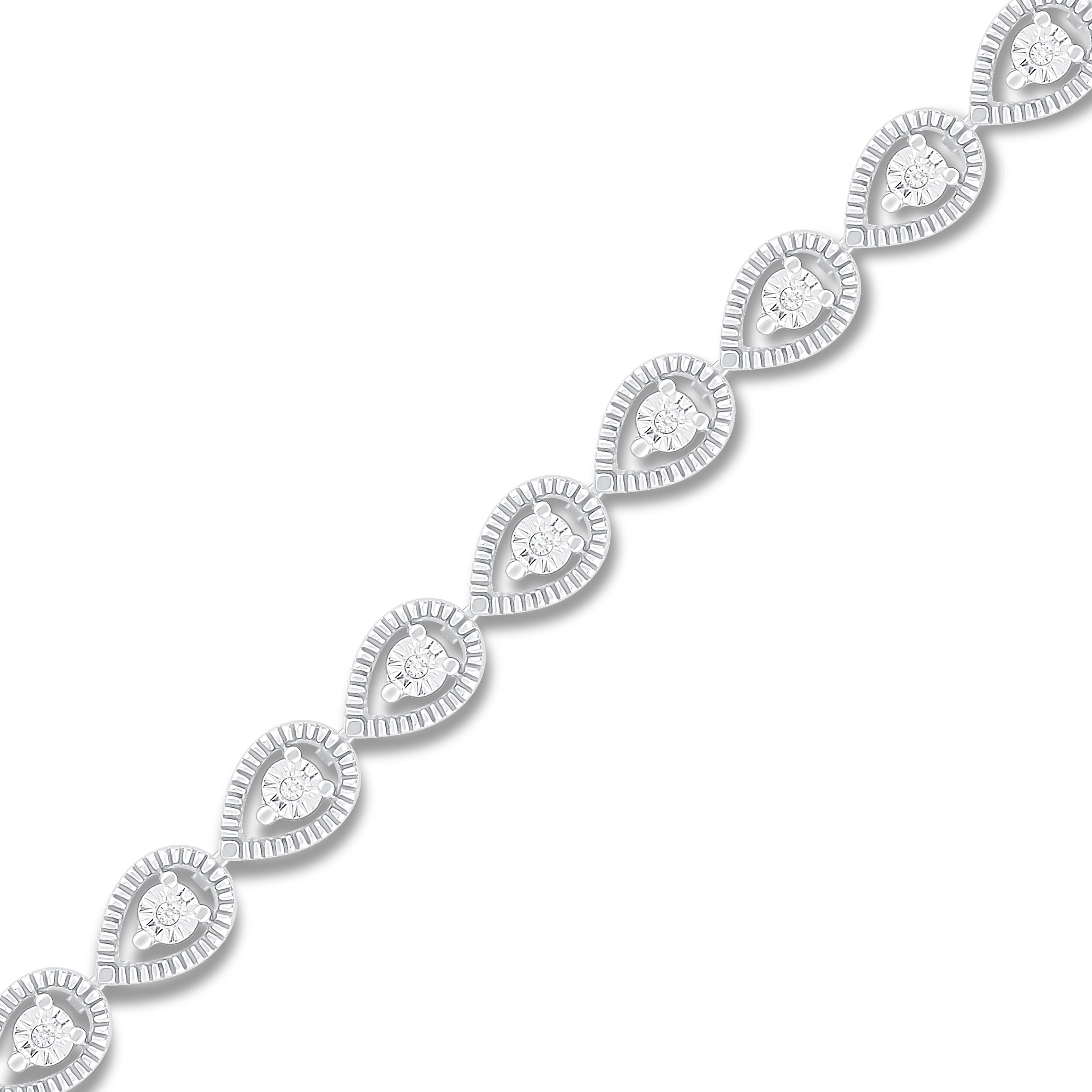 Score serious fashion points at your special events with the Pre-Owned Kay 1/10ct Diamond Tennis Bracelet in Sterling Silver. Featuring real, pear-shaped diamonds set in sterling silver, this bracelet is always an elegant choice. Part of the Pre-Owned Luxury by Rocksbox fine jewelry collection.