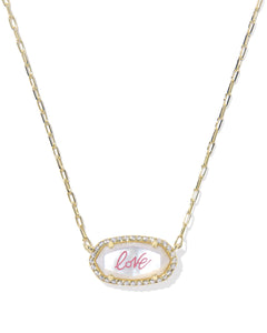 Ari Heart Arrow Short Pendant Necklace in Pink Opalescent Resin