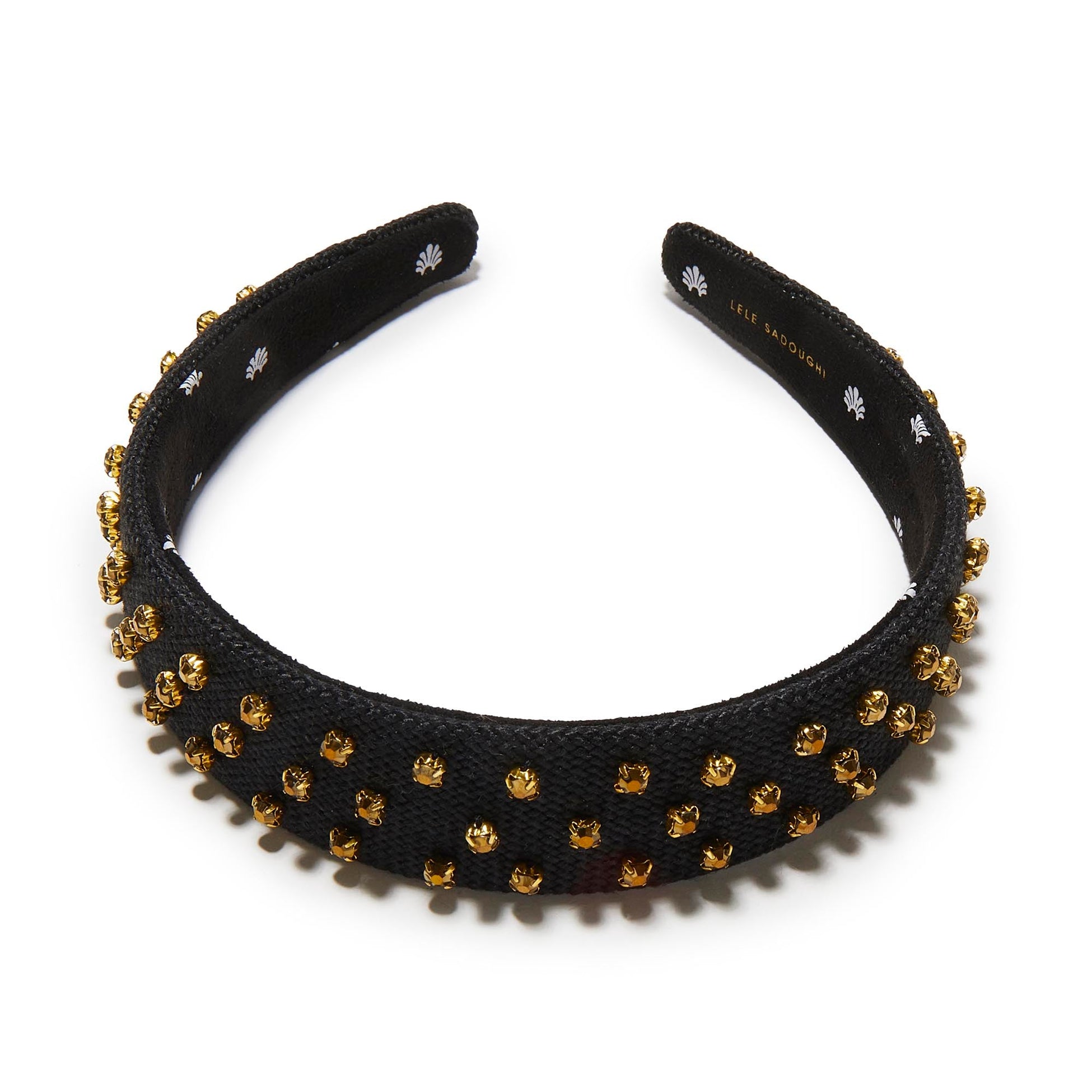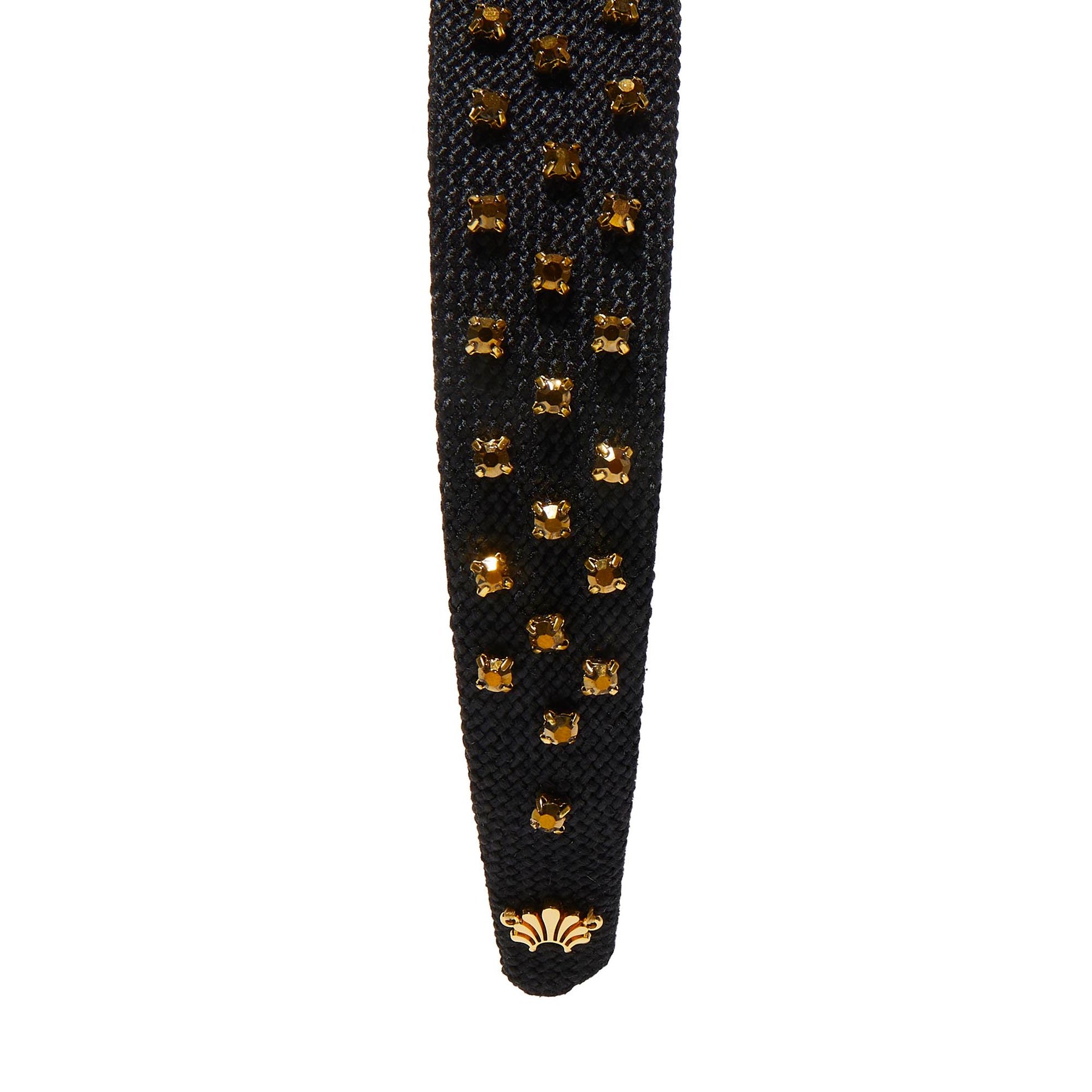 This headband is a classic—with a twist. The 1-inch Burlap Bessette Headband features a sleek black base and dorado crystal studs, adding bold texture to any look.