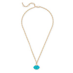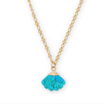 A sculptural shell pendant anchors this mixed-stone design, paired with a genuine turquoise charm. Finished in 14k gold-plated sterling silver, it’s a layered look in one—casual enough for daytime, polished enough for night.