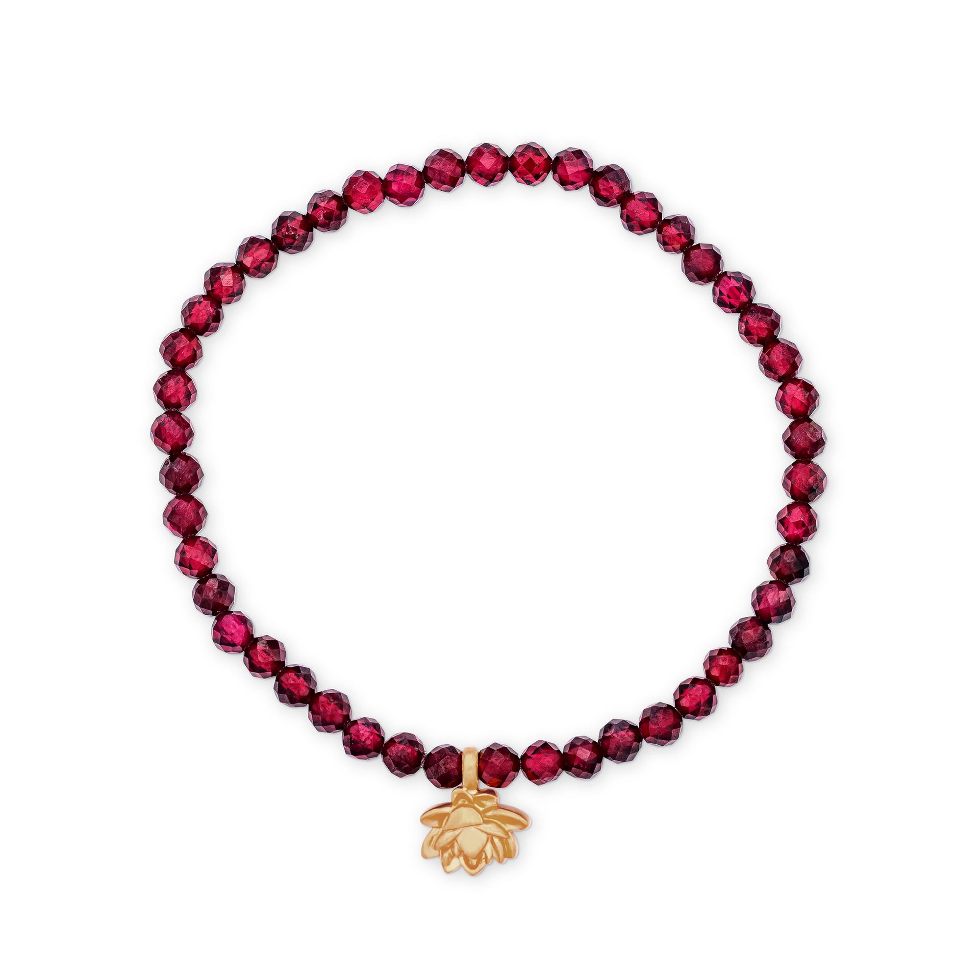 Deep red garnet beads meet a delicate lotus charm — a reminder to stay grounded and bloom through challenge. An easy slip-on piece with meaningful impact.
