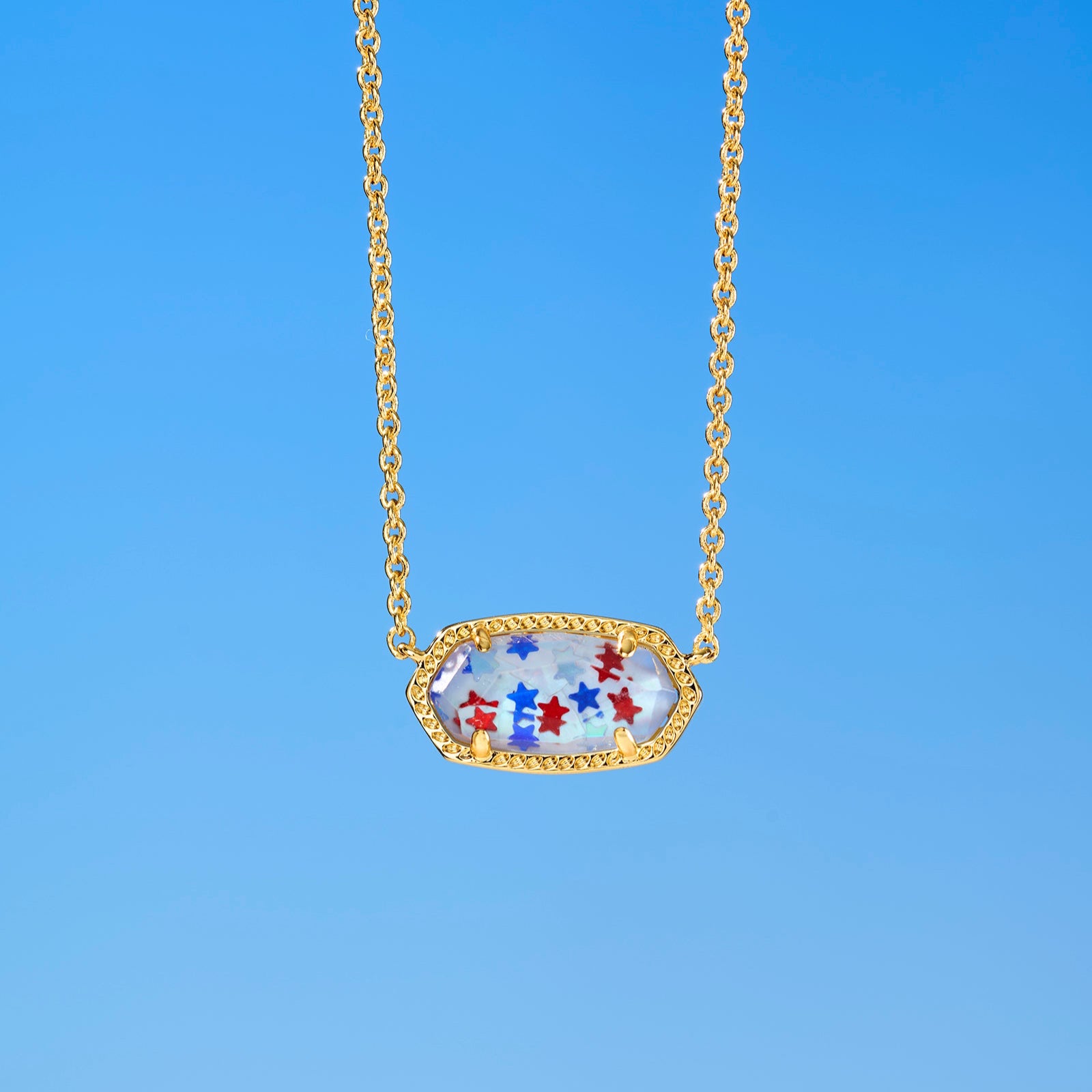 Elisa Pendant Necklace in Red White & Blue Star Illusion Glass