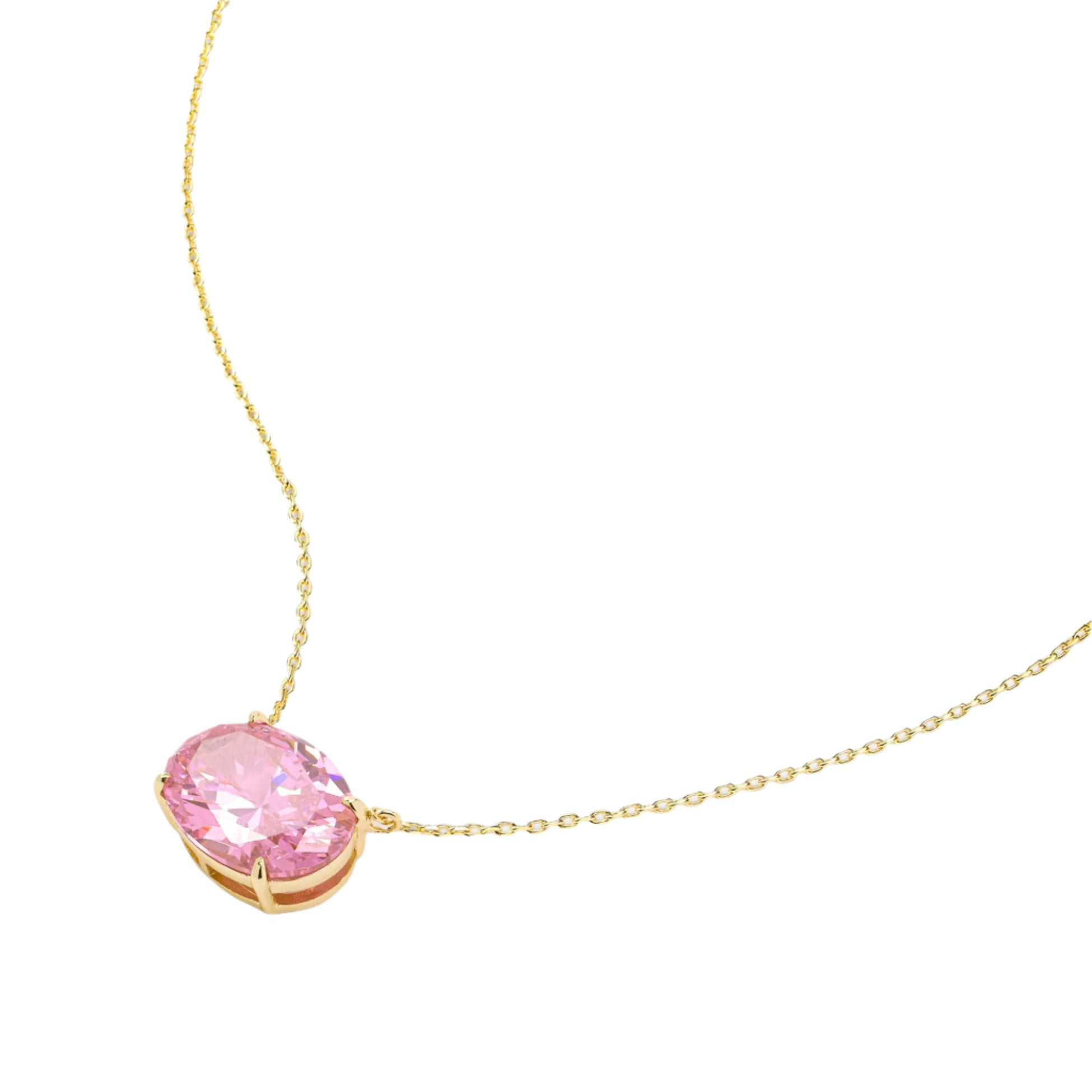 Designed by Melinda Maria, the Hello Gorgeous! Necklace features a vibrant pink CZ set on an 18k gold-plated chain. It’s a playful pop of color that pairs beautifully with neutrals or adds charm to your layered look.