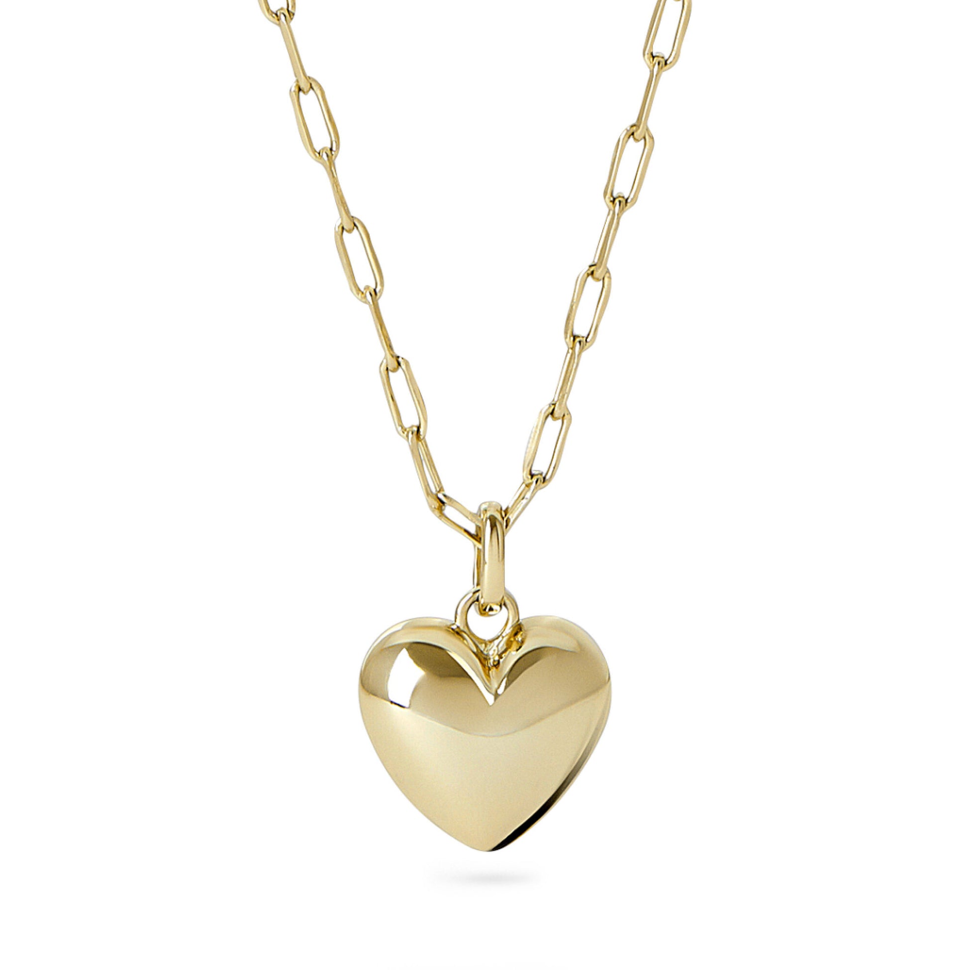 This puffed gold heart necklace is the perfect eye-catching pendant you've been looking for. Be the first to get this adorable gold heart necklace inspired by the perfect geometry of a three dimensional heart with a sleek, glossy texture.