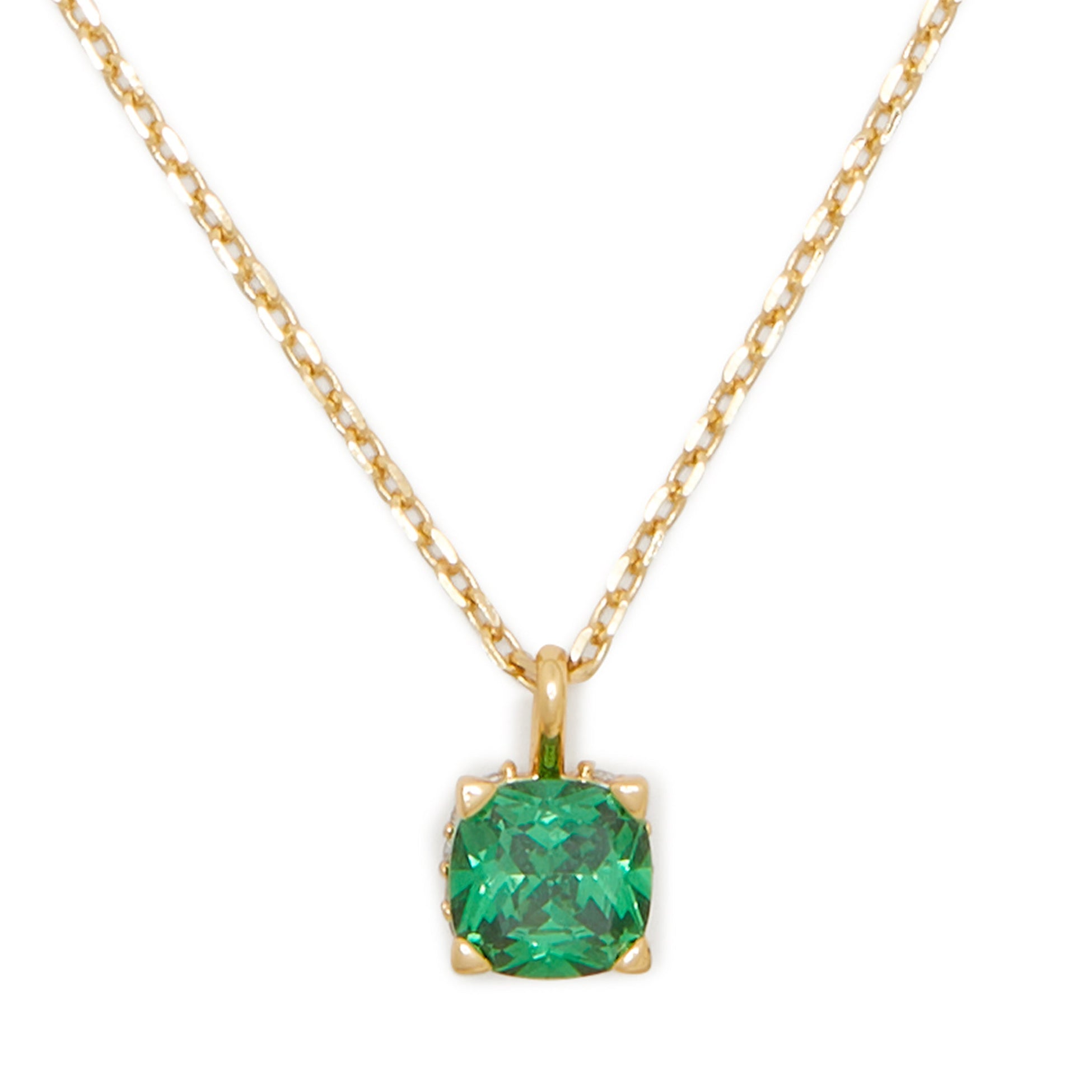 Kate Spade's Little Luxuries Square Pendant in Green CZ is a stylish way to get your daily greens. This pendant necklace is made of high polish, 18k gold-plating with crystals, and measures 6mm.