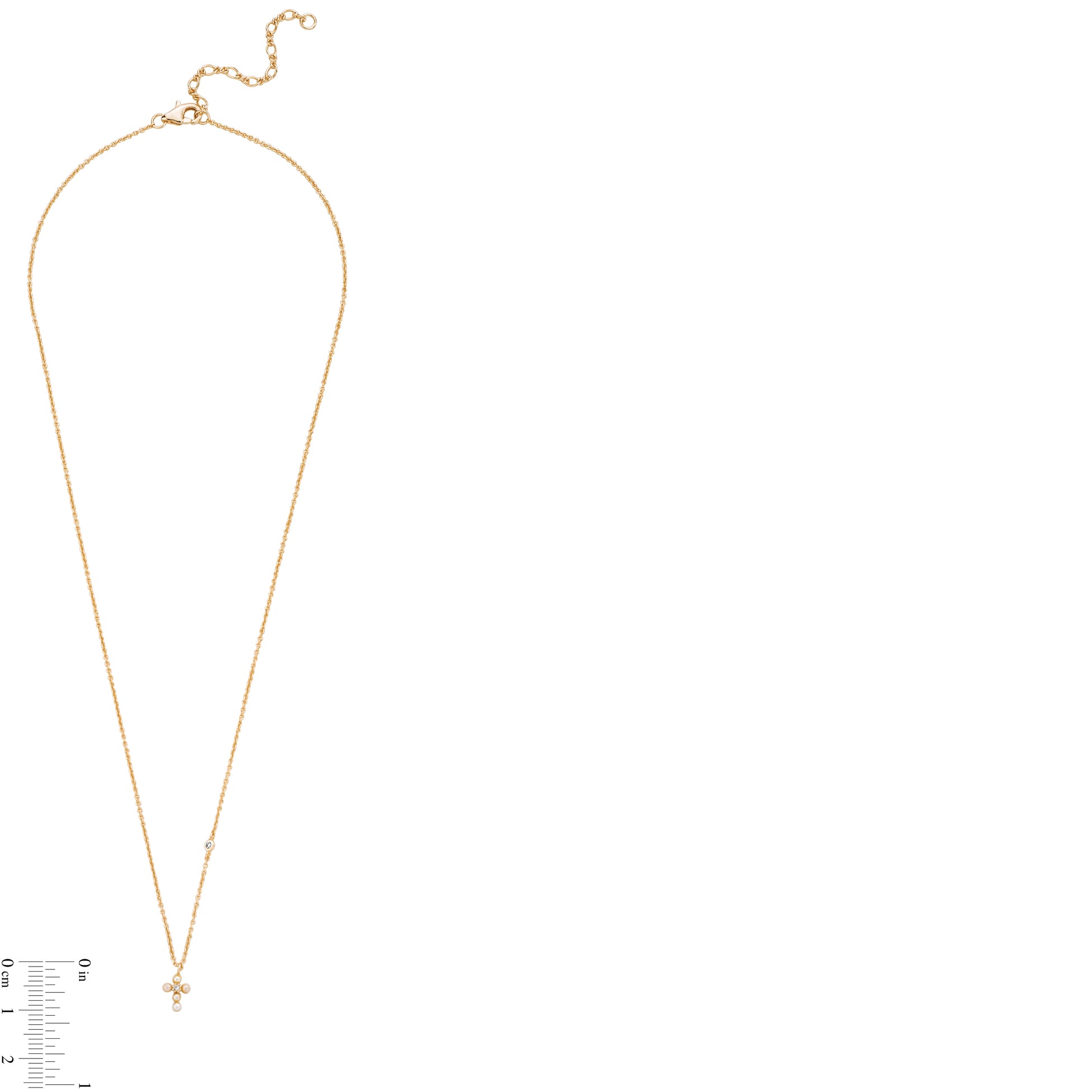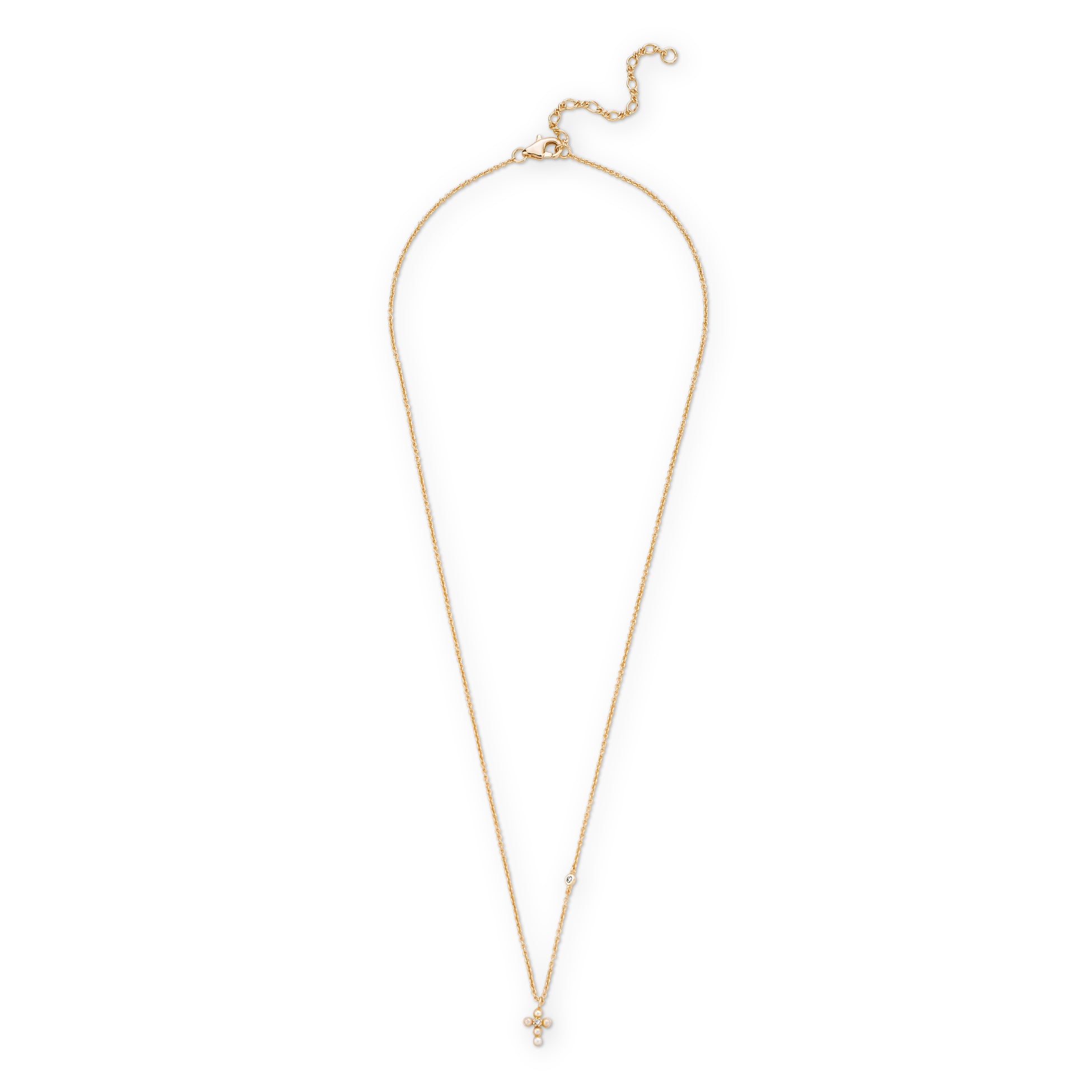 A little bit of sparkle, a little bit of grace. This faux pearl and CZ cross necklace adds just the right touch of shine to your everyday look.