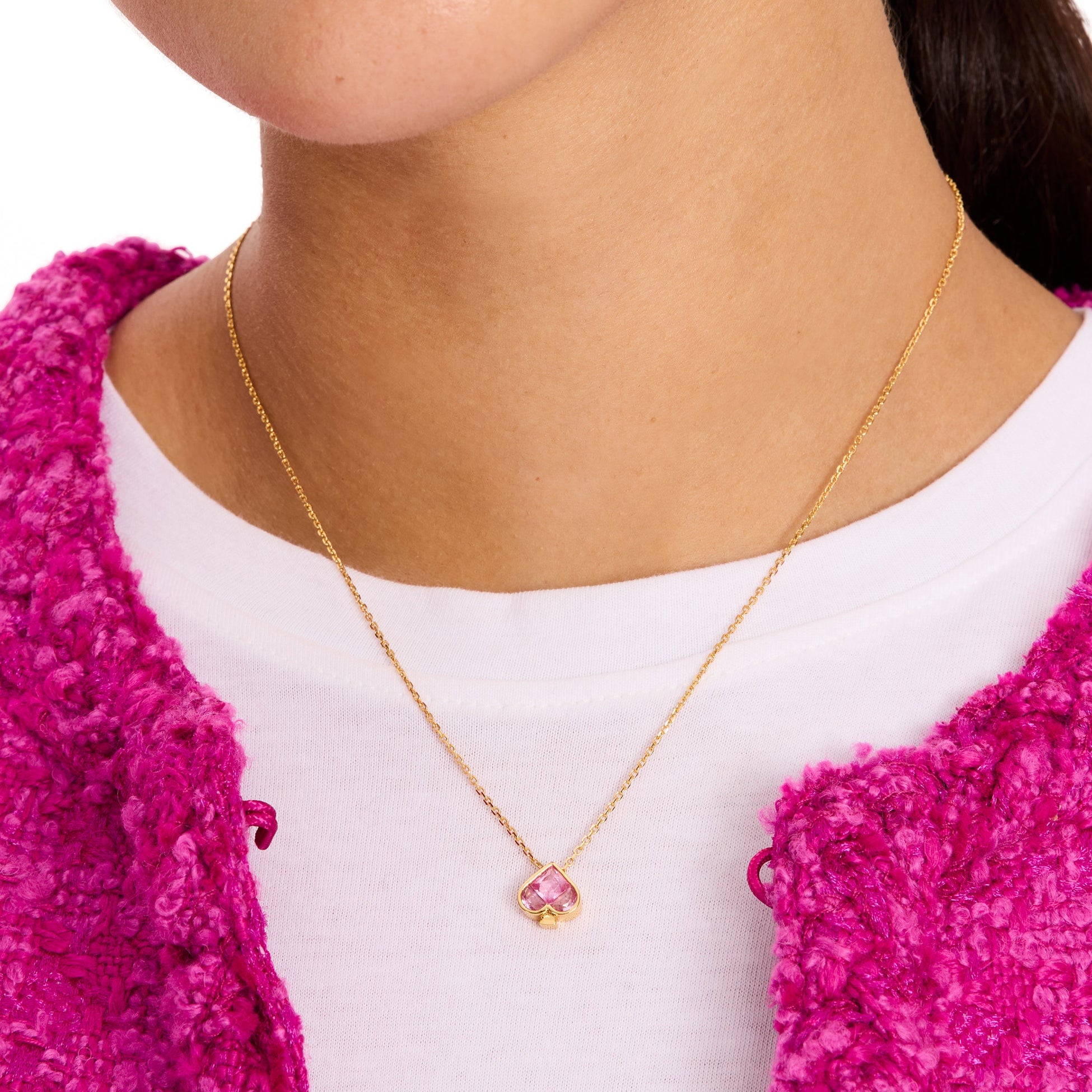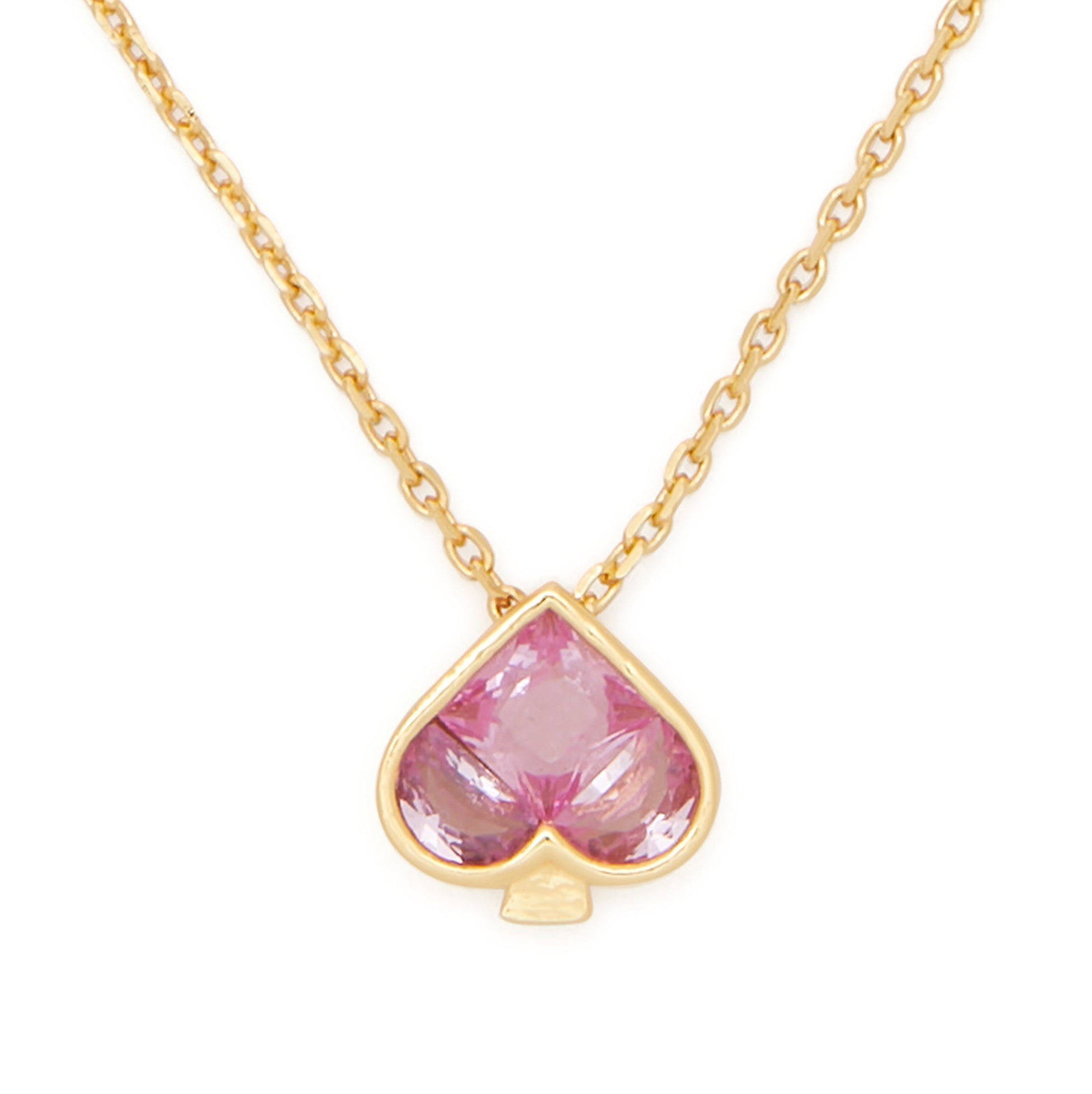 Small in size but big on charm, this pink spade pendant adds a sweet touch to your everyday layers. Sparkling with CZ and finished in 18k gold plating, it’s a playful nod to the brand’s signature shape.