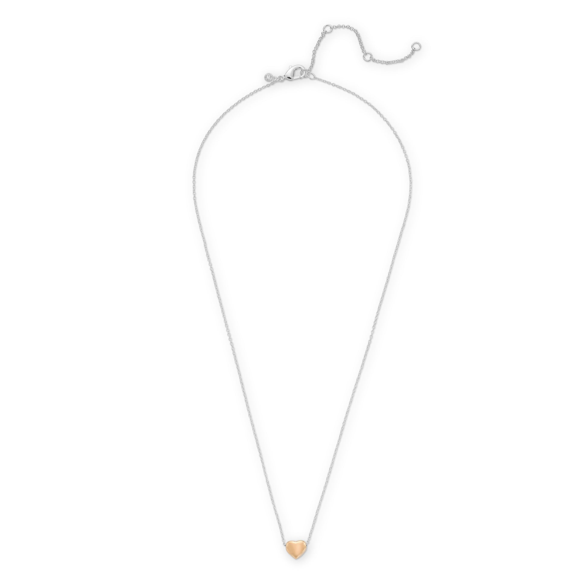 Water Resistant Mixed Metal Puffy Heart Pendant Necklace