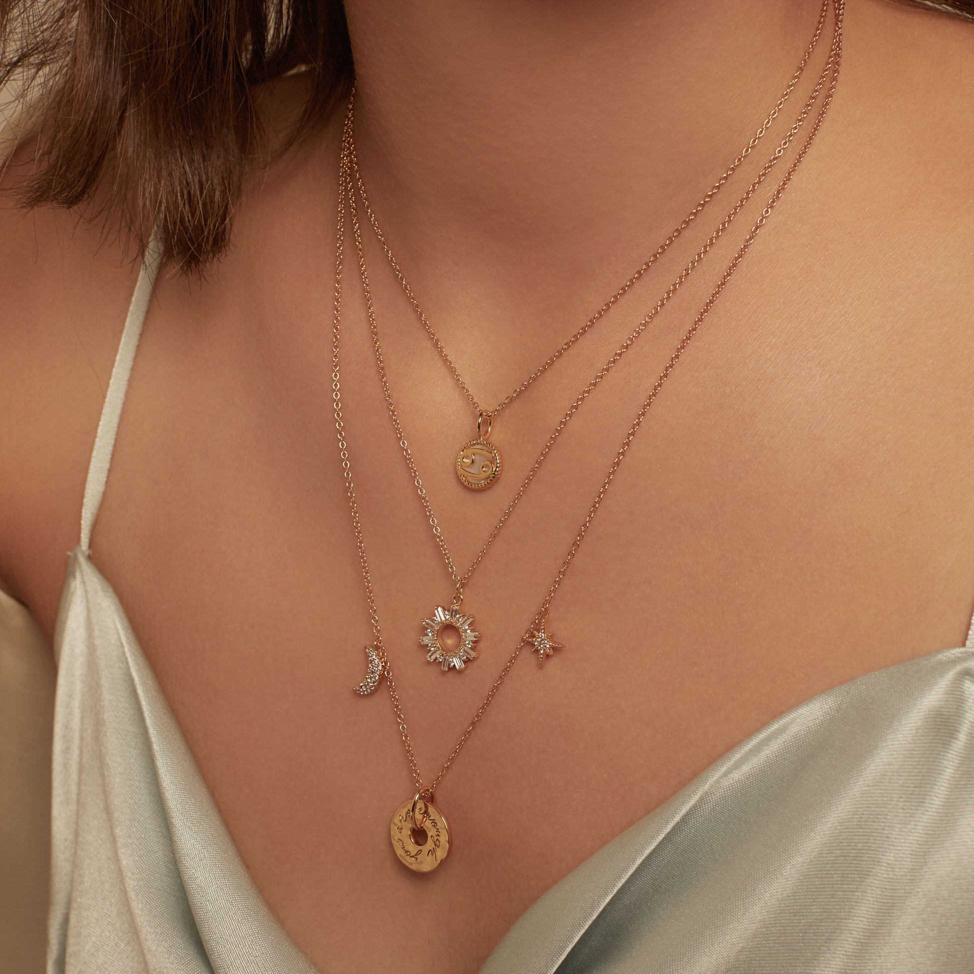 The delicate You Are Enough Gold Mantra Necklace serves as a beautiful reminder of self-worth and inner strength. Crafted in gold, this necklace features a radiant crescent moon and star charm, symbolizing the beauty and brilliance within each of us. The hand-etched mantra, "You Are Enough," graces the pendant, offering a grounding affirmation for your daily journey. Wear this piece as a gentle encouragement to embrace your true self, no matter where life takes you.