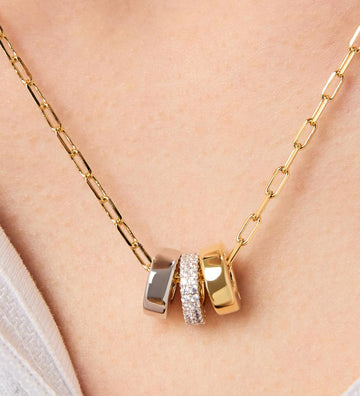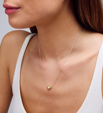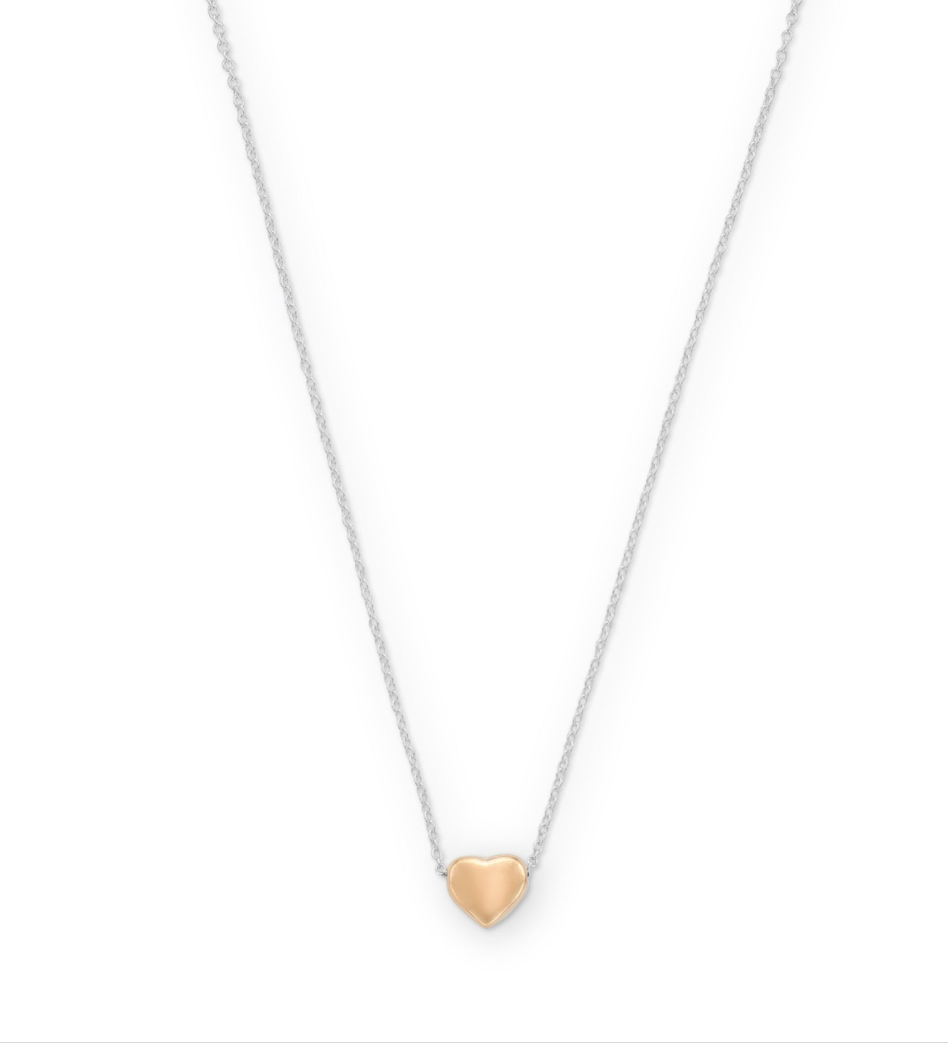 Water Resistant Mixed Metal Puffy Heart Pendant Necklace
