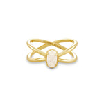 The Emilie Double Band Ring in Gold & Iridescent Druzy by Kendra Scott is a high polish, gold plated ring featuring a crossed double band and prong-set iridescent druzy. Pair this shining ring with a loose button-up and jeans for a little casual sparkle!
