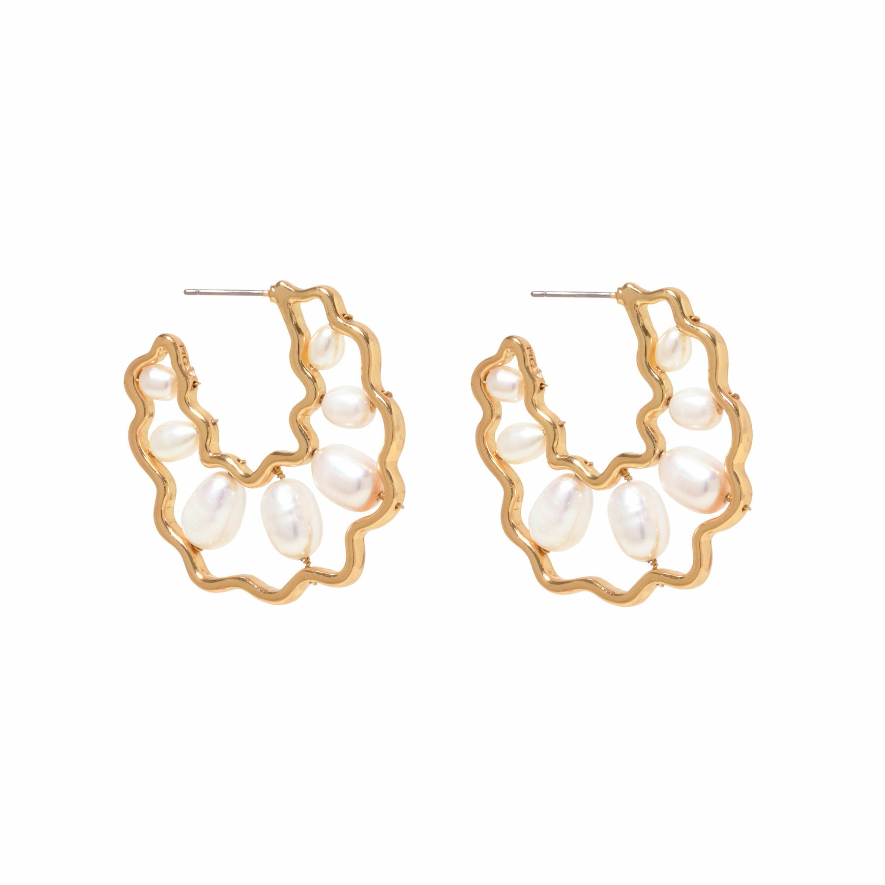 Organic, scalloped hoops in a lightweight medium size, adorned with freshwater pearls to allow for a bit of brevity and lightness. These were some of the designer's favorites for discovering the market of Marrakesh.