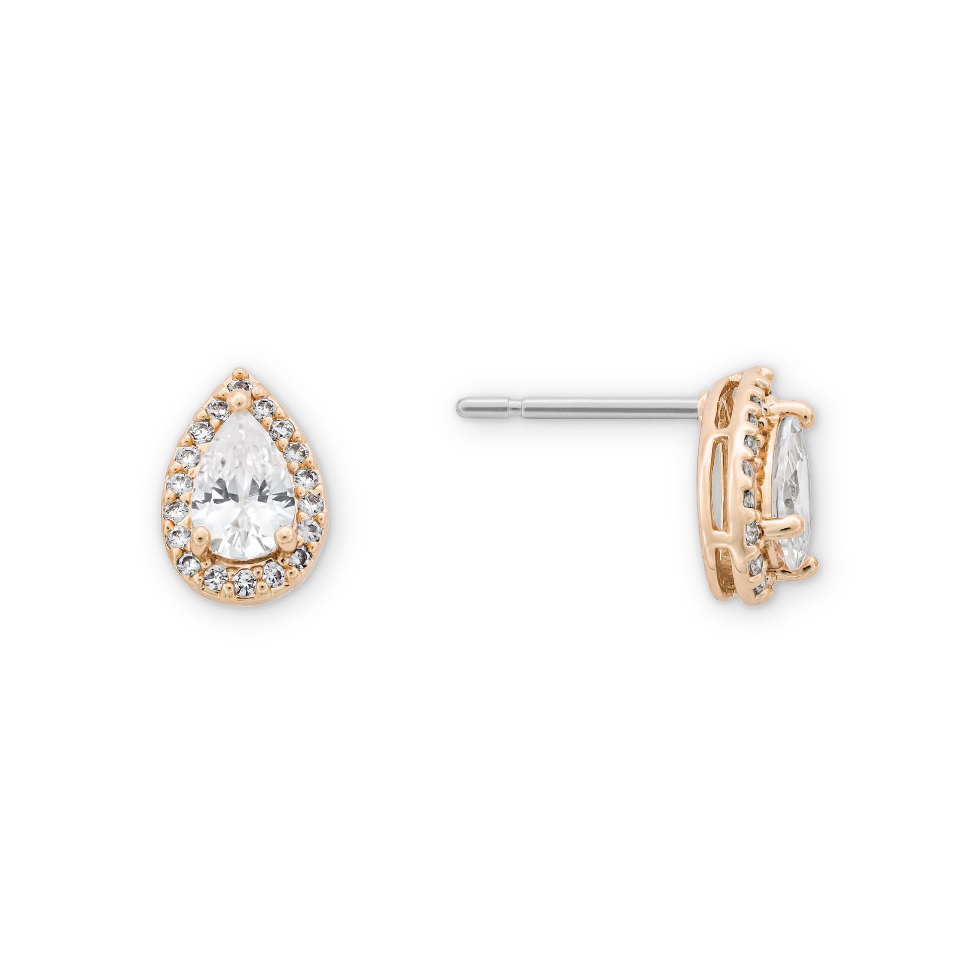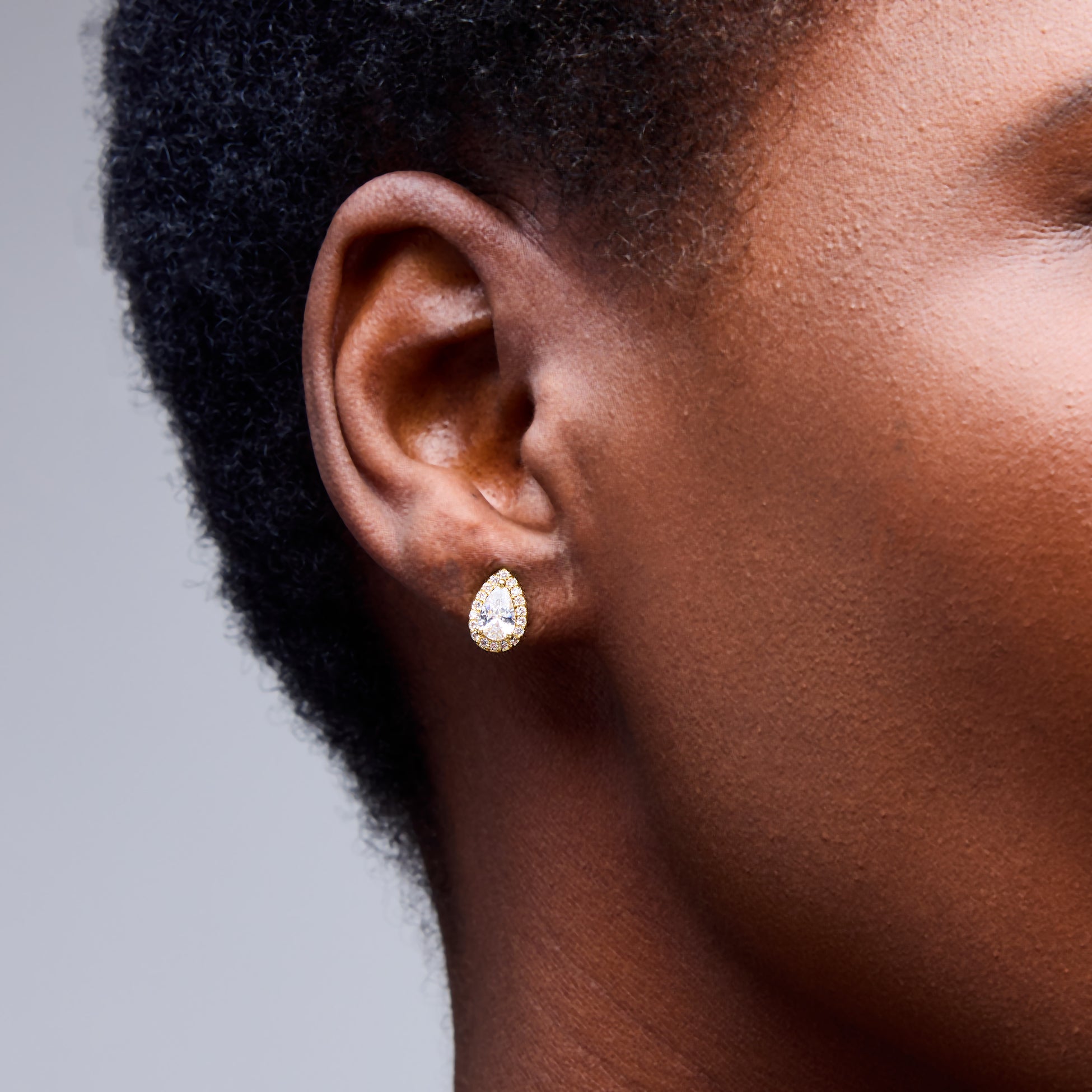 With large pear-shaped stones set in cz pave, these earrings pack enough shine to last a lifetime. They're a bold take on classic studs and are sure to level up any outfit.
