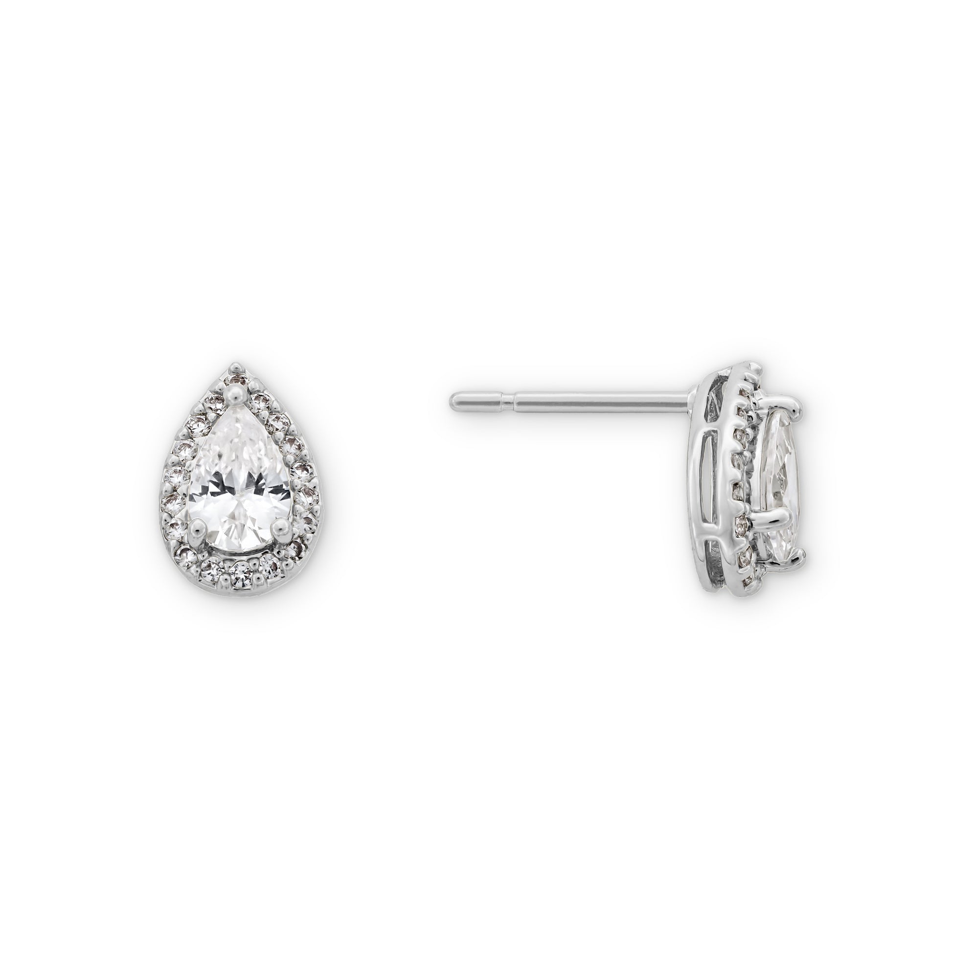 Pear Kate Studs in Clear & Silver Plating