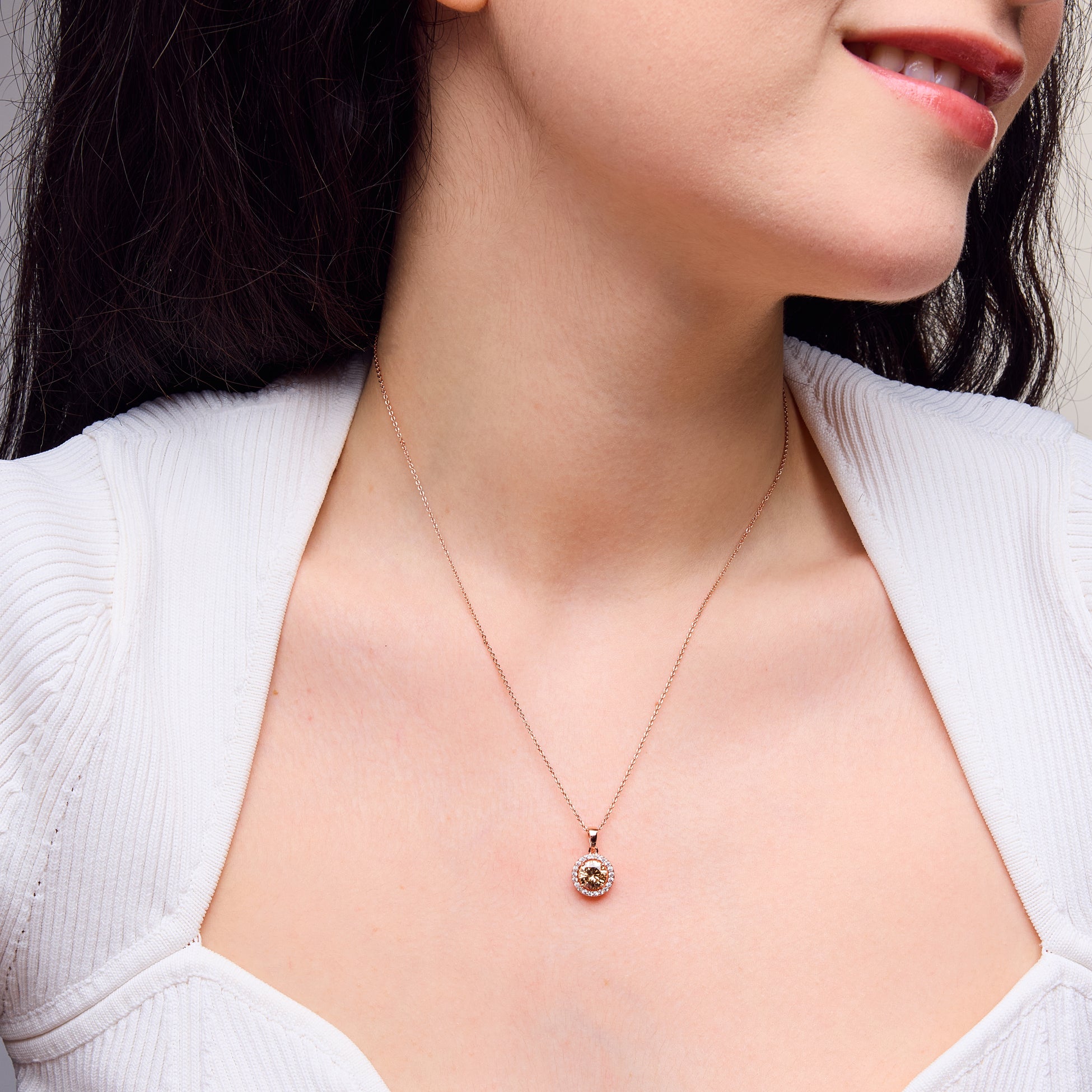 Round Kate Pendant Necklace in 14k Rose Gold Plating & Champagne