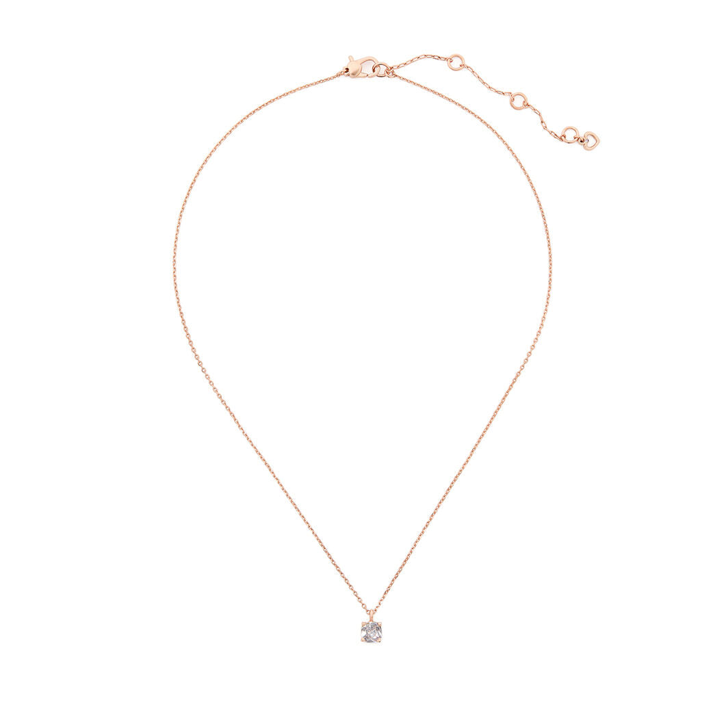 The Little Luxuries Clear Square Pendant in Rose Gold by kate spade new york is an elevated everyday essential that adds a beautiful pop of color. This necklace is made of high polish, rose gold with a bold crystal pendant, which measures 6mm.