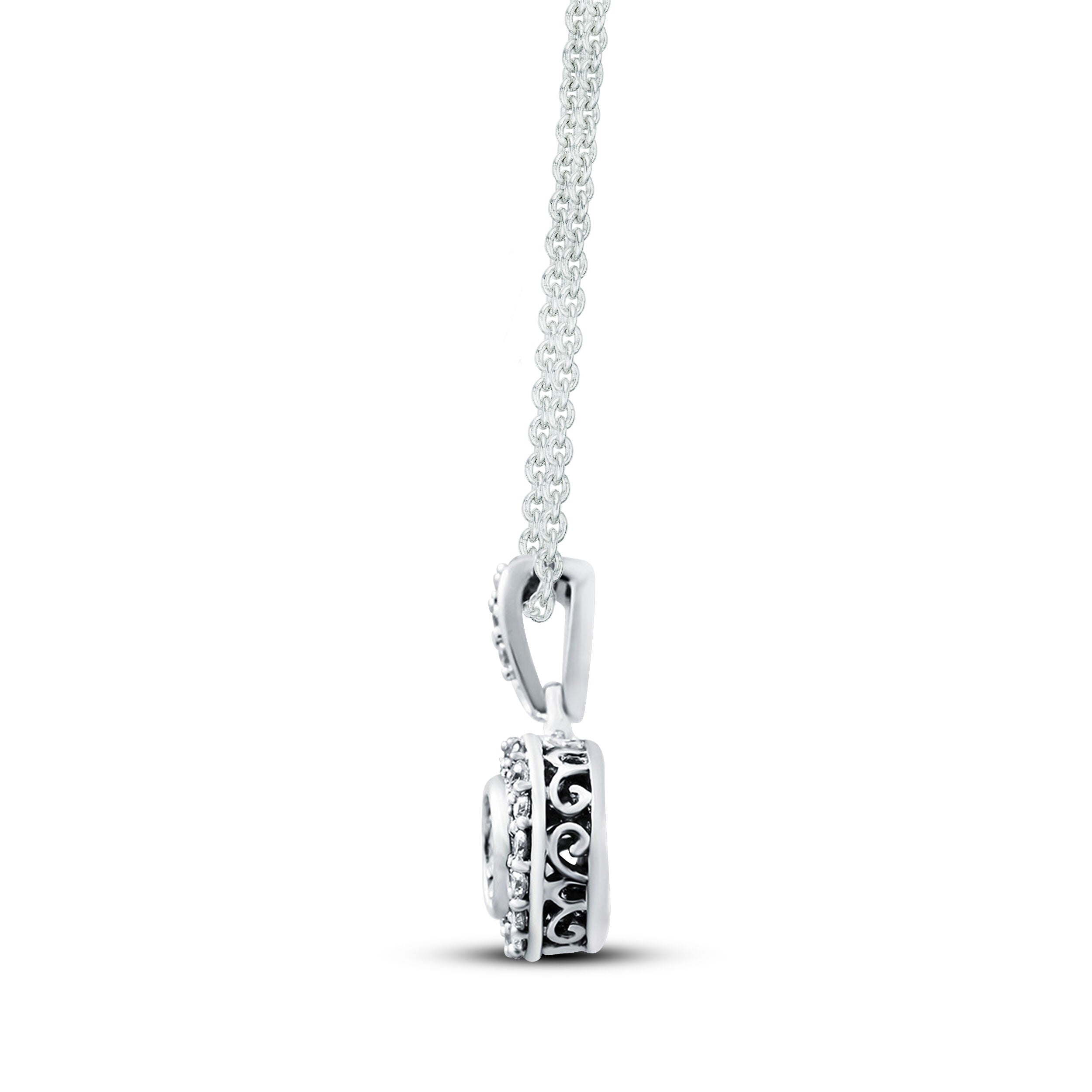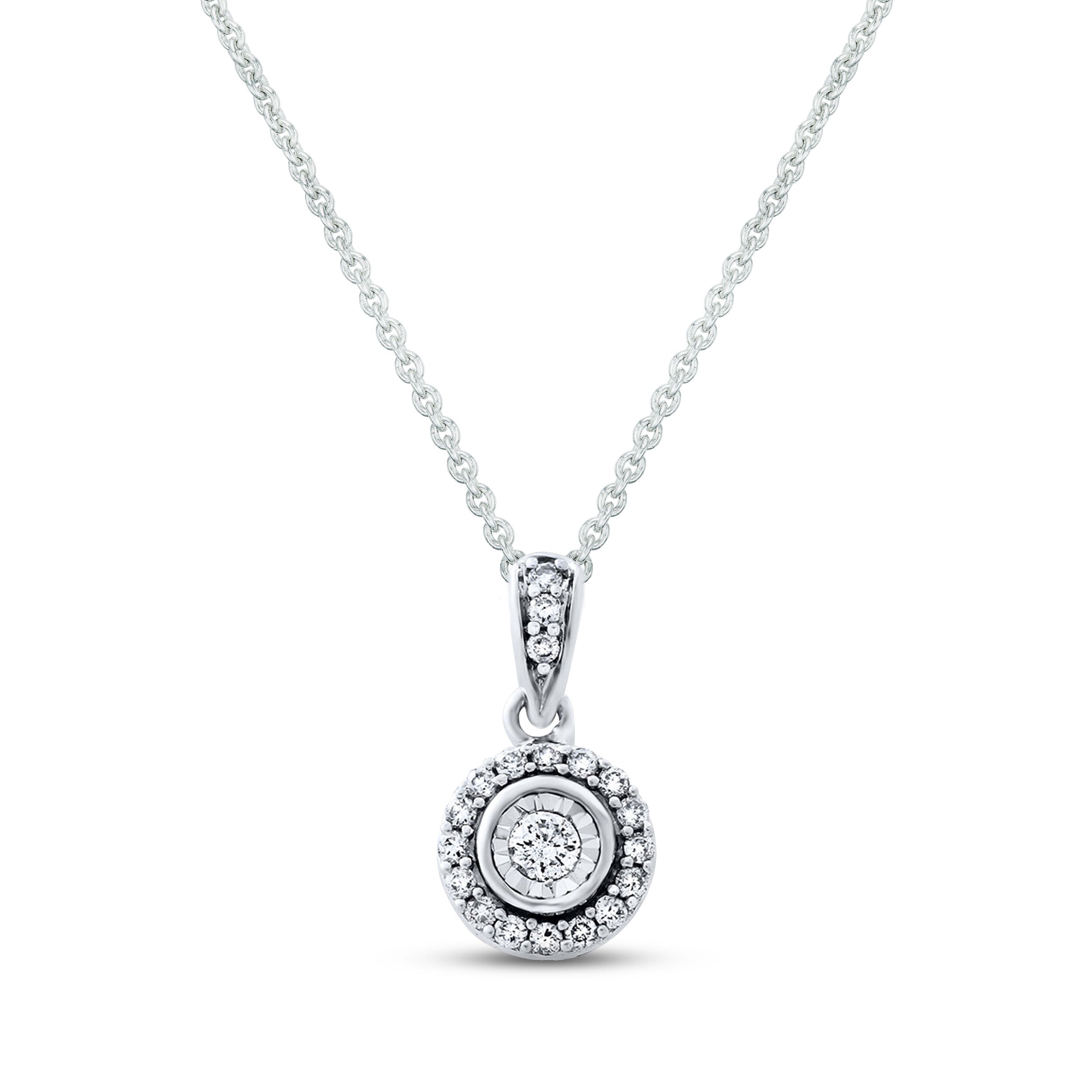 Dainty is dazzling when you add the Pre-Owned Kay 1/4ct Diamond Pendant Necklace in Sterling Silver to your special looks. Featuring real, round diamonds encircled by additional diamonds and set in sterling silver, this elegant pendant necklace is part of the Pre-Owned Luxury by Rocksbox fine jewelry collection.