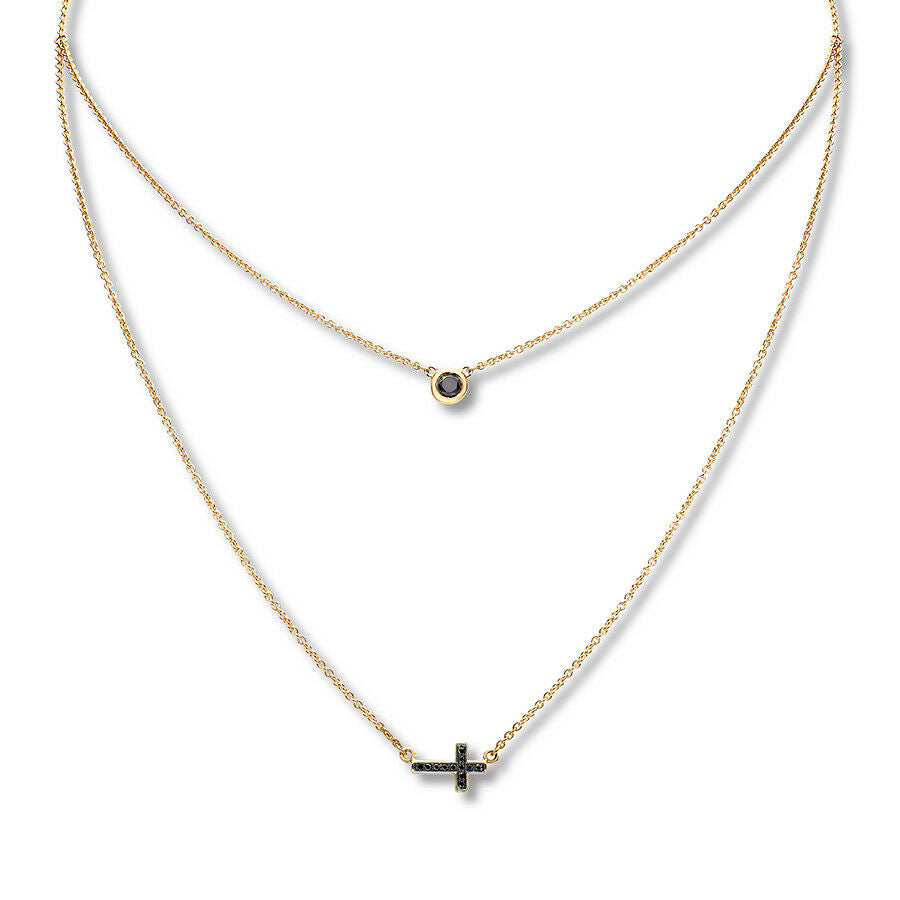 Pre-Owned Kay 1/5ct tw Black Diamond Layered Choker Necklace in 10k Yellow Gold