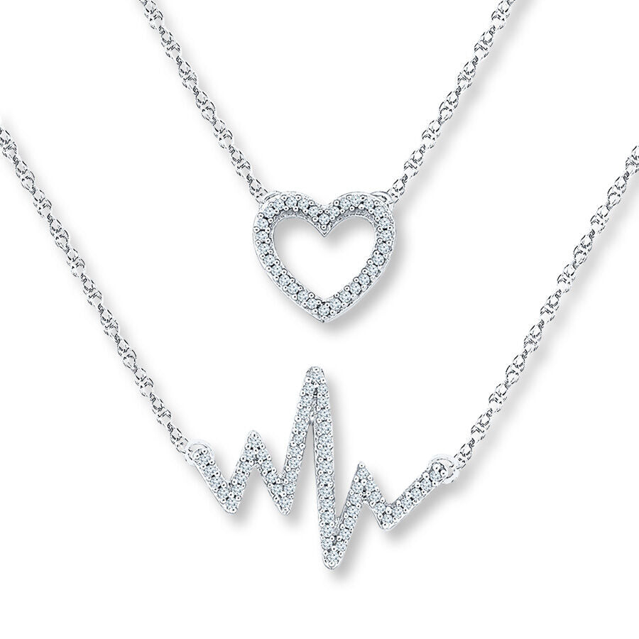 Pre-Owned Kay 1/6ct tw Diamond Heartbeat Necklace in Sterling Silver