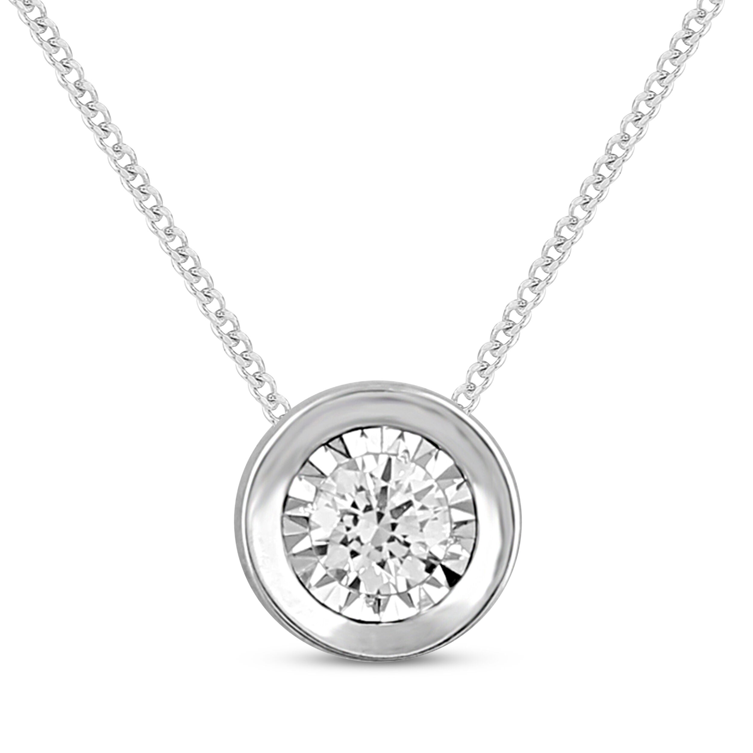The Pre-Owned Kay 1/6ct Diamond Pendant Necklace in 10k White Gold is a stunning piece that makes the perfect gift for someone special, including yourself. Featuring a bold, round diamond pendant, this high polish necklace measures 19 inches.