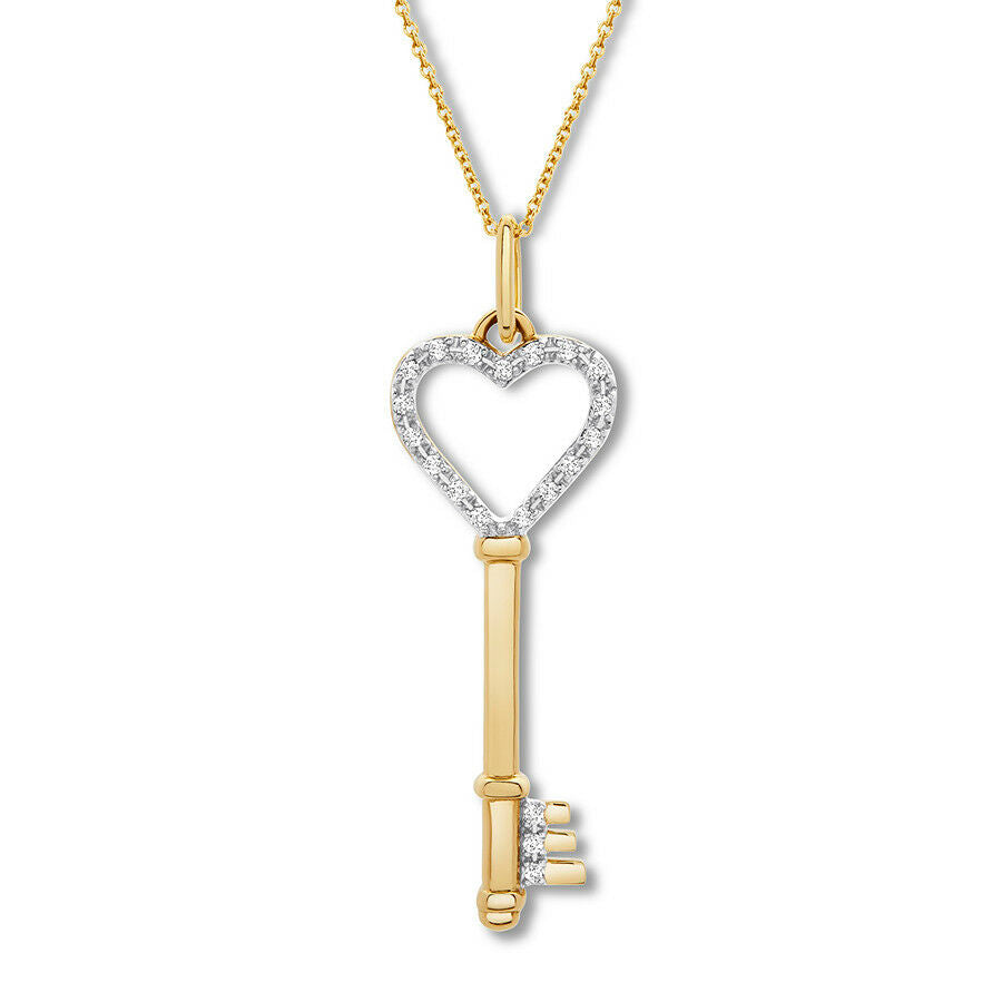 Pre-Owned Kay 10k Gold 1/10ct tw Diamond Heart Key Pendant Necklace